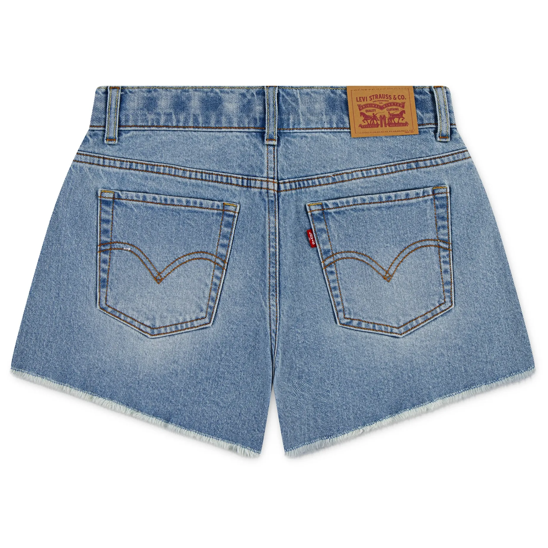 Features: High rise, A-line cut, Frayed hemline, Classic 5-pocket design, Adjustable waistband, Levi’s patch, Belt loops, Button closure, Zip fly