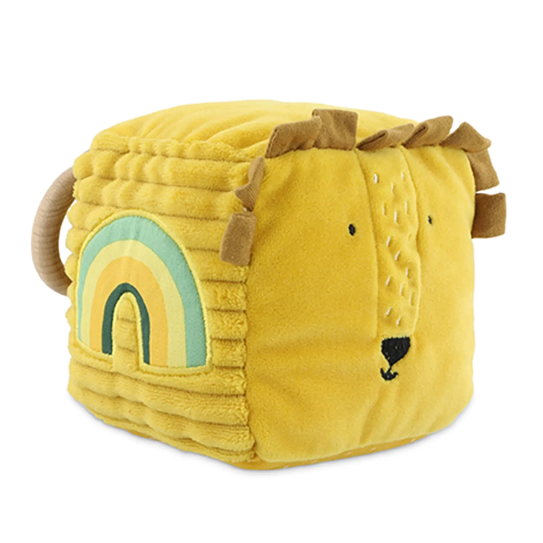 Soft, squishy and full of fascinating features, this friendly-faced activity cube offers hours of discovery. It comes with different textures, paws and a tail, a mirror, crinkly insides and both a wooden and a silicone ring – perfect for chewing and carrying.