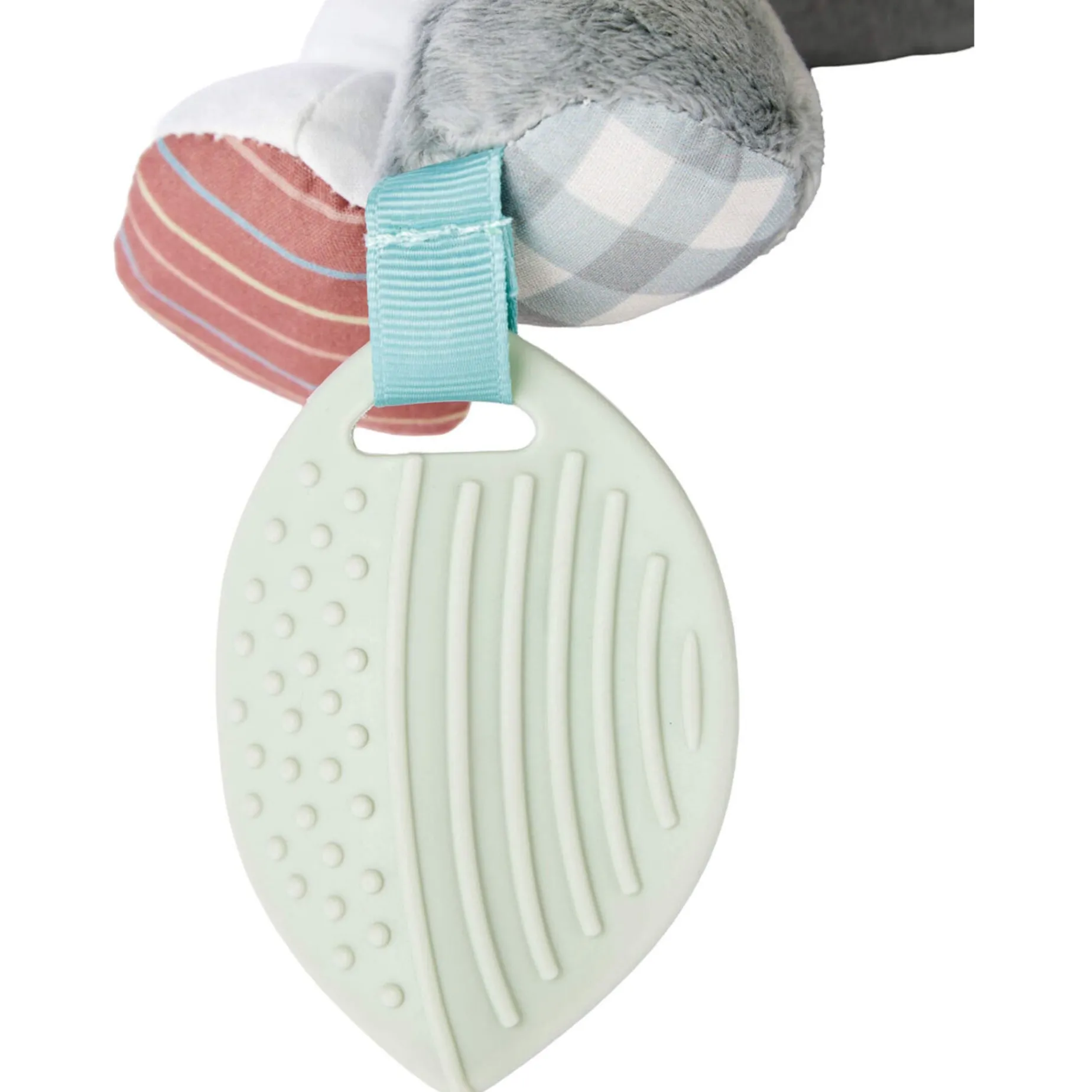 Multi-sensory play features include rattle, crinkle, teether toy, mirror, squeaker & more