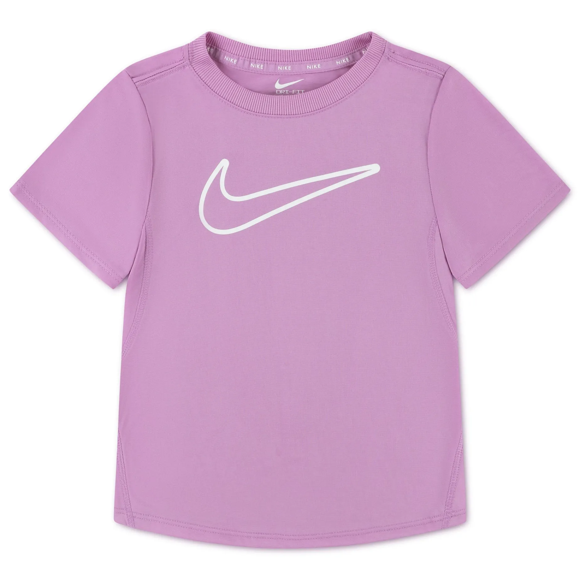 This performance tee from Nike is a modern, yet classic silhouette made of poly jersey knit fabric enhanced with moisture-wicking Dri-FIT Technology to help kids stay cool and dry while they’re going hard at the playground, during the game, or while having fun with friends.