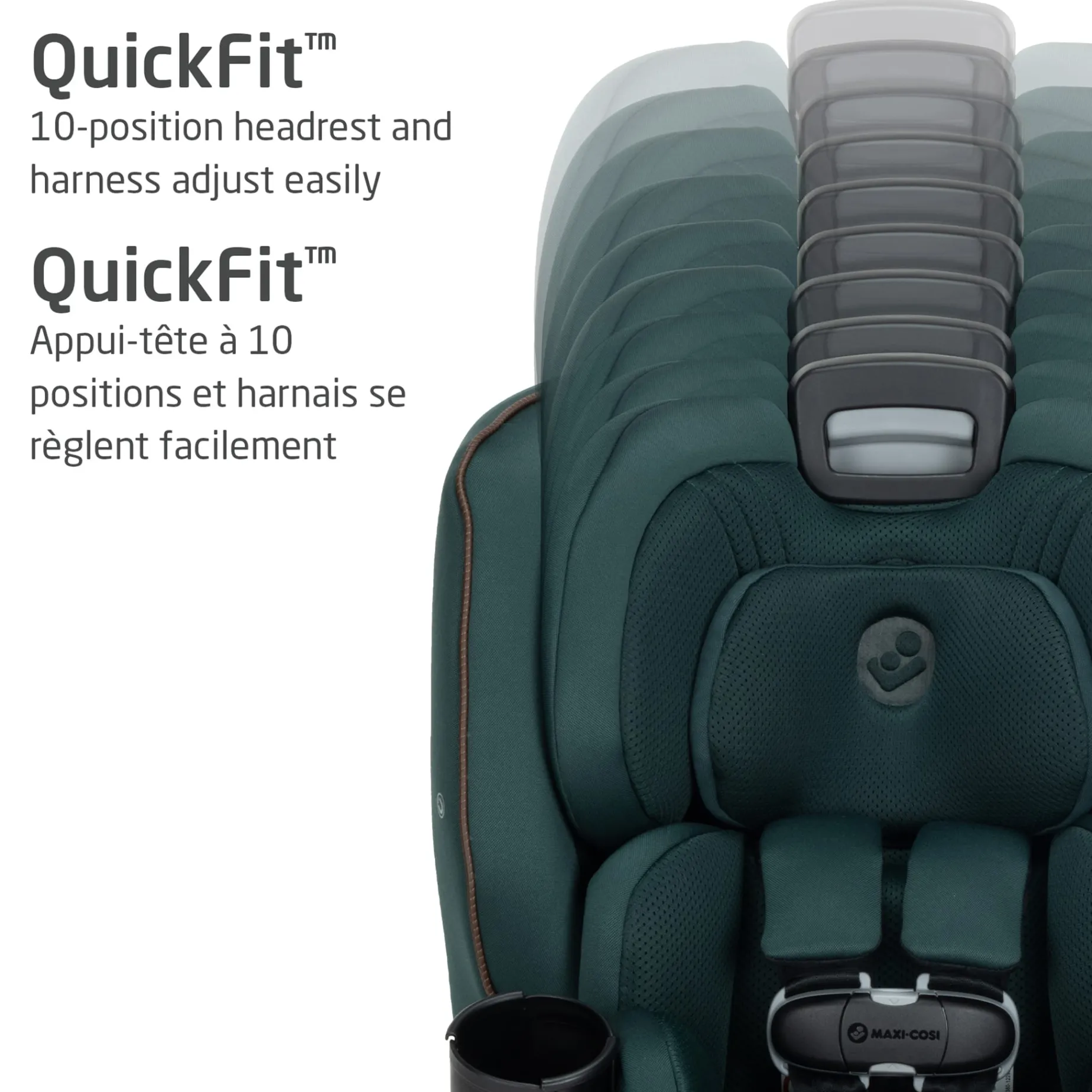 [ONE INSTALL AND DONE!] 360° FlexiSpin technology allows rotation in all modes of use and makes getting your child in and out of the car easier than ever while also eliminating the need to reinstall as your child grows.[10 YEARS OF USE] All-in-One convertible car seat for birth to 10 years: rear-facing (5–40 lbs., 19”–40”), forward-facing (30–65 lbs., 29”–49”), and belt-positioning booster (40–100 lbs., 43”–52”).[BUILT-IN VEHICLE BELT LOCK OFF] and Maxi-Cosi’s TensionFix, our patent-pending red-to-green tension-sensitive indicator, shows you when your seat belt has tension and helps you get a secure fit during installation.[TOP TETHER SECURE] with a visual indicator that promotes proper tether use with a clear visible guide.[SECURE EFFORTLESS BUCKLING] with magnetic harness holders to help keep the harness out of the way while placing your child in the seat and ClipQuick™ magnetic chest clip for struggle-free buckling.[QUICKFIT 10-POSITION HEADREST] and harness adjust easily when your child enters the next growth stage.[EFFORTLESS RECLINE] Adjusts to 5 recline positions, keeping your child comfortable at every stage.[INNOVATIVE CUP HOLDER DESIGN] rotates to accommodate sippy cups of various shapes and styles. Both cup holders are removable and dishwasher safe.[FUTURE FRIENDLY FABRICS] Featuring PureCosi™and EcoCare 100% recycled, fire-resistant fabrics made without wood or added fire-retardant treatments. The yarn produced is soft, comfortable, breathable, and machine washable.[ENGINEERED & TESTED] Exceptional design meets or exceeds federal safety standards. The attached connection cord ensures that the base and seat must be used together when installed for an added layer of safety and peace of mind.