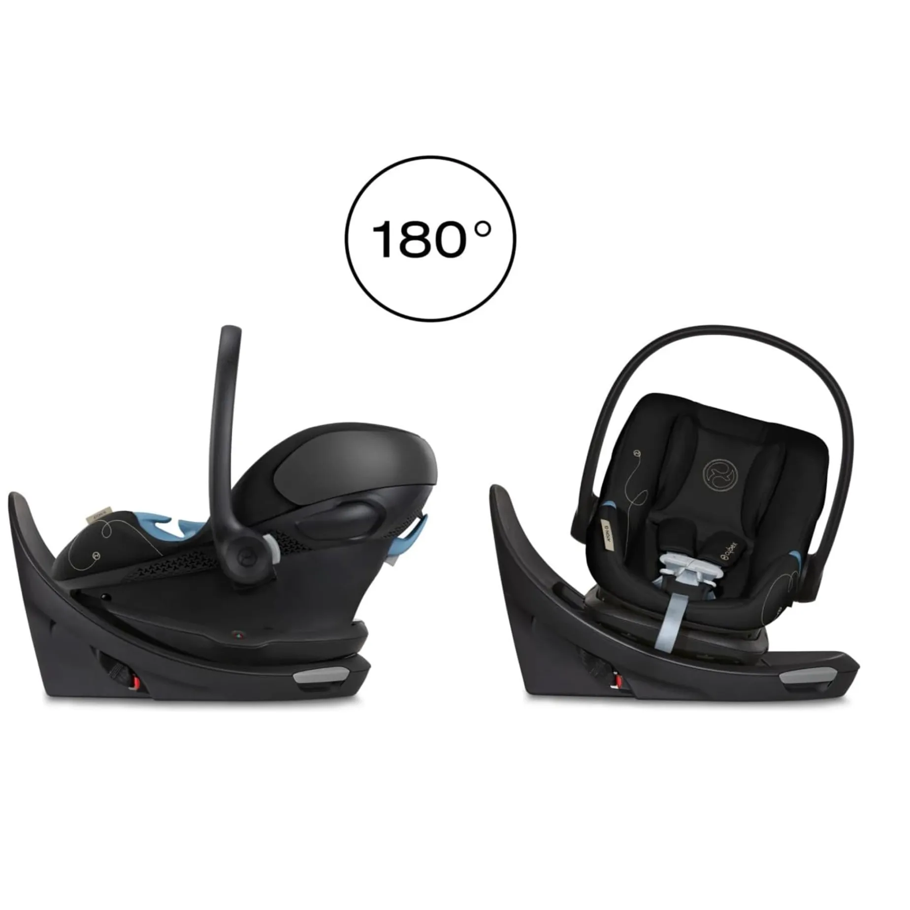 The CYBEX Aton G Swivel delivers 180 degrees of rotation while offering maximum convenience and safety without compromising on design. The 180-degree swivel base provides an ergonomic swivel that makes it easier than ever to load and unload the child from the carrier while the seat is installed in the vehicle, and advanced safety features like the anti-rebound bar and Linear Side-impact Protection reduce collision forces in the event of a crash. Further optimizing safety and comfort, the lightweight Aton G Swivel also includes an adjustable headrest and no-rethread harness, in-shell air ventilation for natural airflow, and the SAFELOCKâ„¢ belt tensioner for quick and easy installation.