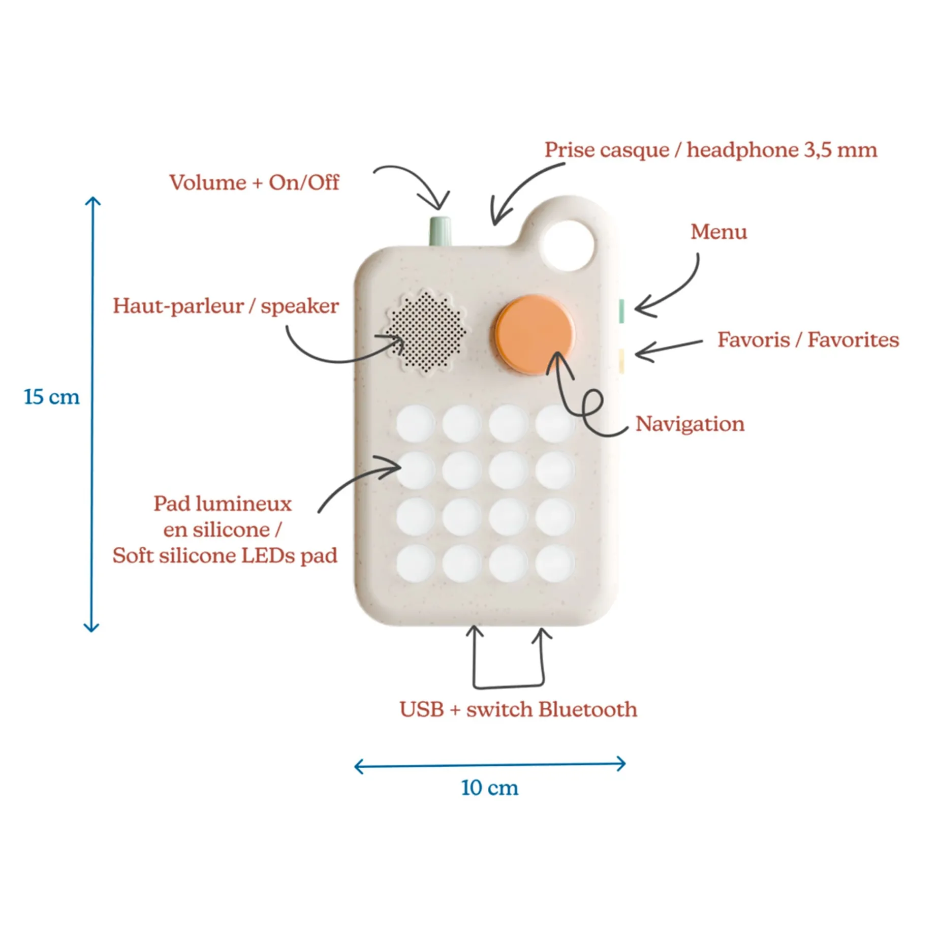 Designed for children aged 0 to 10, the Fabli is a small screen-free, radiation-free audio player that offers a world of playful and educational games, beautiful audio stories, interactive adventures, nursery rhymes and lullabies, as well as soothing soundscapes.