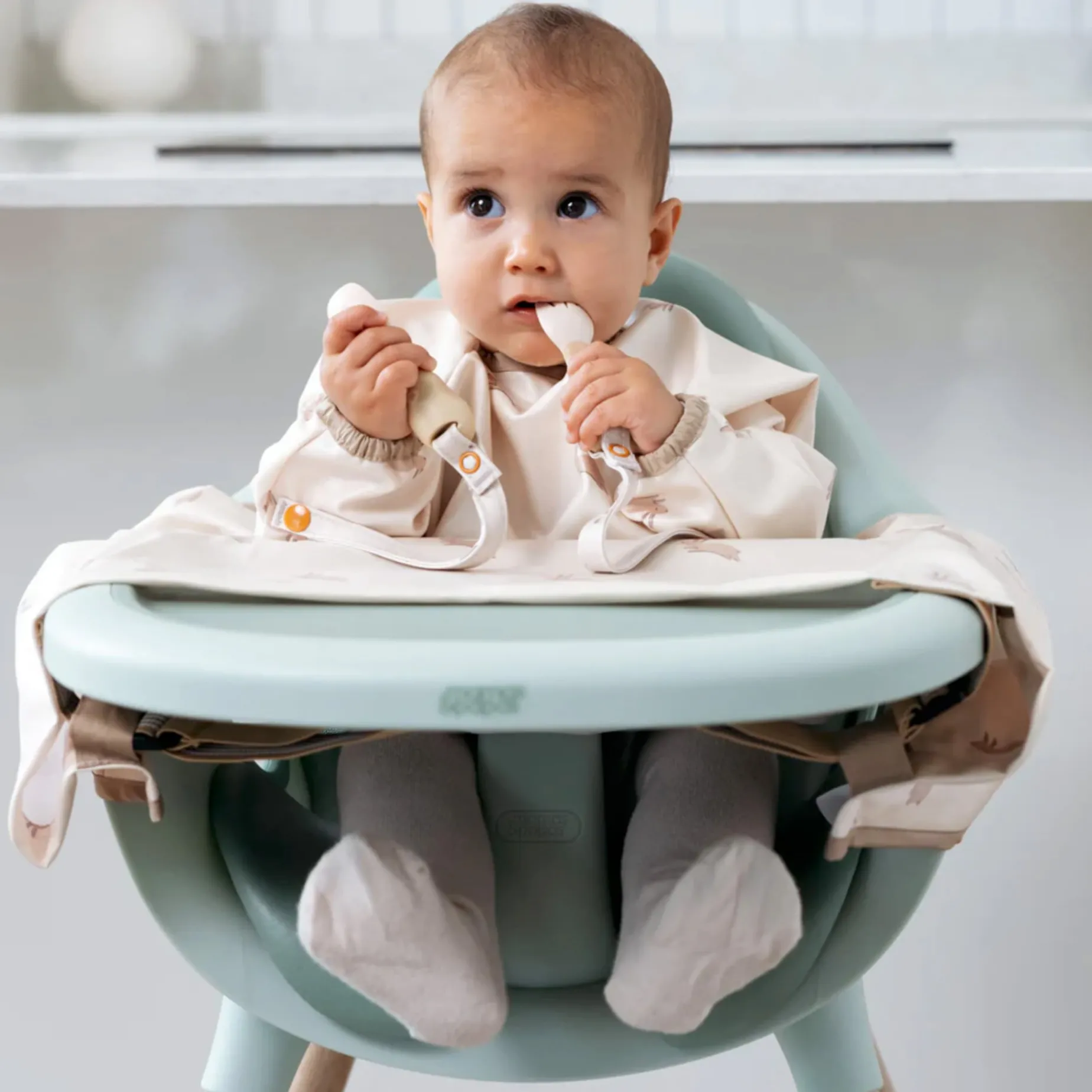 -Unique ‘no drop’ system – simply attaches to your Bibado Coverall Weaning Bib (via integrated strap). Can be used without straps too!
