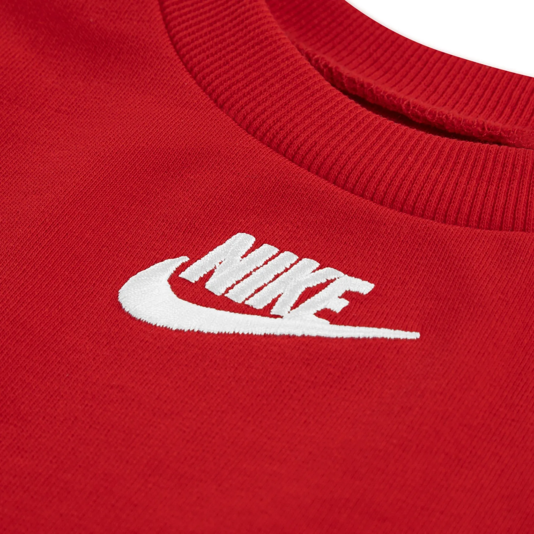 Made of lightweight, soft baby French terry, this 2-piece set from Nike is warm weather cozy. The top has a relaxed fit, tagless crewneck, and a boxy cut that creates a cropped look. The shorts have a comfy, stretch paper bag waist for a unique, laid-back look little ones can play freely in.