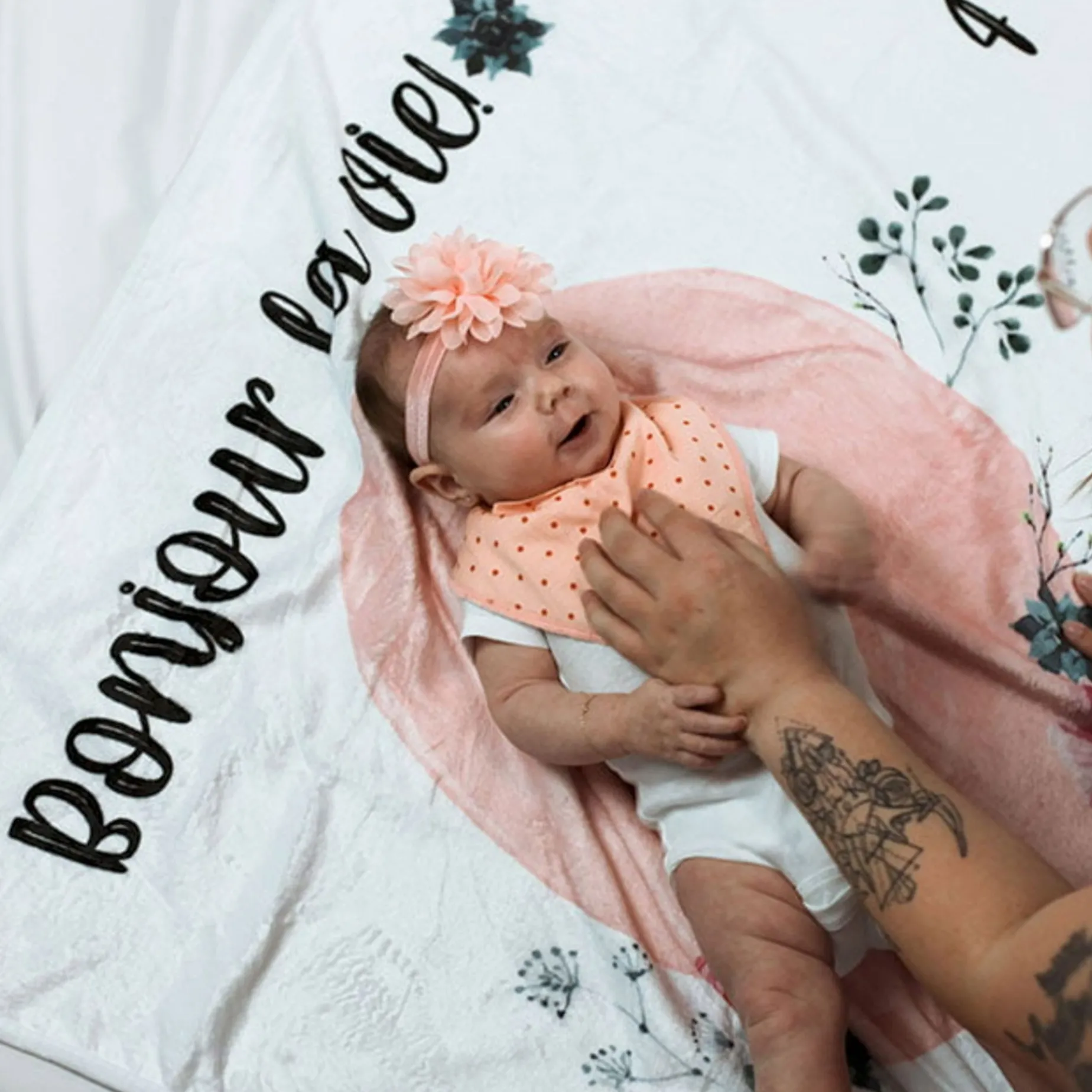 Our baby milestone blanket is perfectly designed to create a small photography studio, right in the comfort of your home. The super soft blanket is designed for multiple use. 1. Take your weekly and monthly pictures with baby to keep up with their quick growth. 2. Use it to keep your little one warm and cozy during colder seasons. 3. The design is created for pictures during the 1st year of your baby, but the blanket itself offers a long lasting relationship with your baby thank to it’s big size and it’s great quality!