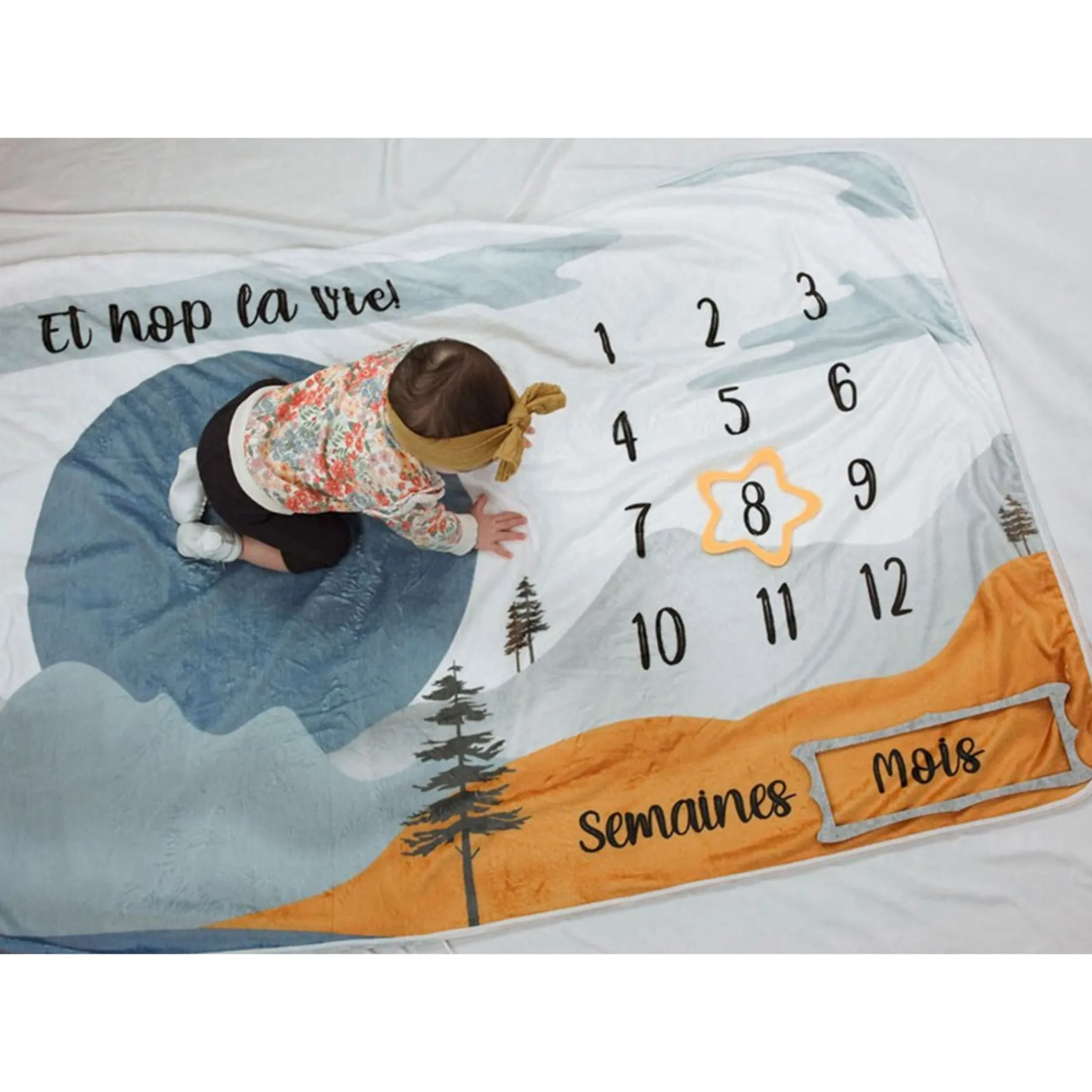 Our Et Hop la vie – baby milestone blanket is perfectly designed to create a small photography studio, right in the comfort of your home. The super soft blanket is designed for multiple use. 1. Take your weekly and monthly pictures with baby to keep up with their quick growth. 2. Use it to keep your little one warm and cozy during colder seasons. 3. The design is created for pictures during the 1st year of your baby, but the blanket itself offers a long lasting relationship with your baby thank to it’s big size and it’s great quality!
