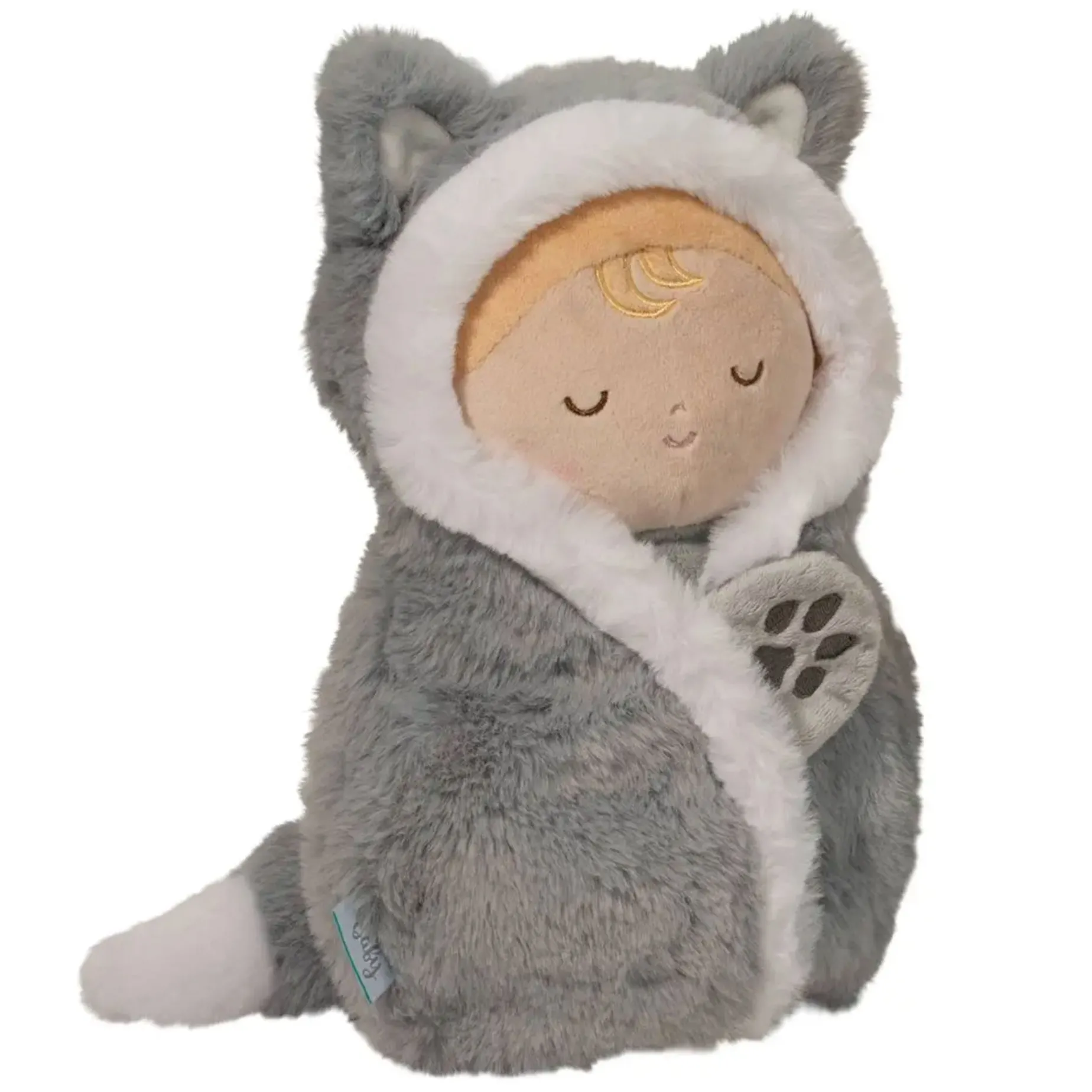 Take to the woods and run free with the newest member of the pack, our adorable Baby Wolf Hug soft doll! This sweet Baby wears a gray and white plush swaddle accessory. It features an endearing paw print closure that makes wrapping up or undressing Baby an easy task for little hands. A wolf tail and pair of ears lend charm to the swaddle’s design, while luxuriously soft plush materials make it a delight to touch and cuddle. With its fluffy, white trim, Baby is sure to be safe and warm in the swaddle’s cozy embrace. Creative play and soothing snuggles are just around the corner, bring home our Baby Wolf Hug and set your little one’s imagination loose!