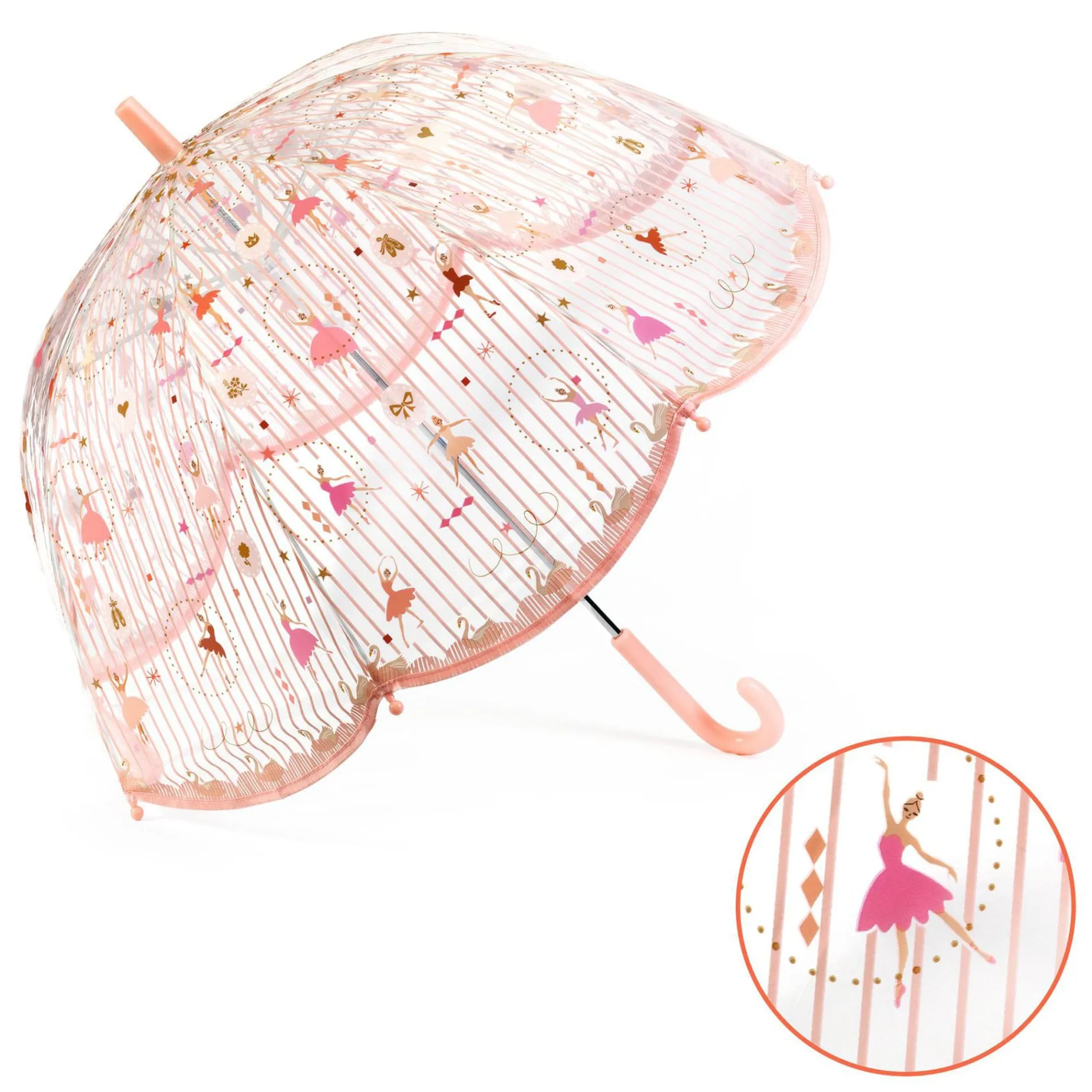 A chic and practical umbrella featuring ballerina illustrations. Its transparent canopy allows children to see where they’re going, and the manual opening with a safety system makes it easy to open and close without pinching fingers. A colorful accessory, perfect for brightening up rainy outings!