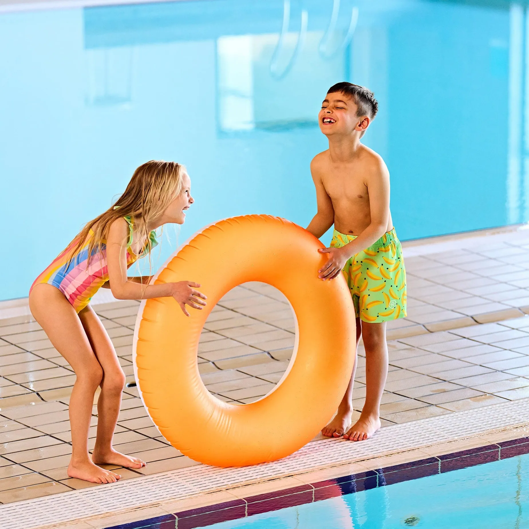 GRS CERES-0366, OEKO-TEX® STANDARD 100 Cert. No. 2476-411R DTI Swim shorts from Color Kids. The swim shorts have an all-over print. They have an elastic waistband with a drawstring and fit loosely around the thighs. The shorts have an inner mesh lining that helps ensure comfort. Additionally, they dry quickly. Certified acc. to GRS – Made with more than 50% Recycled Material CERES-0366 Certified acc. to OEKO-TEX® STANDARD 100 Cert. No. 2476-411R DTI