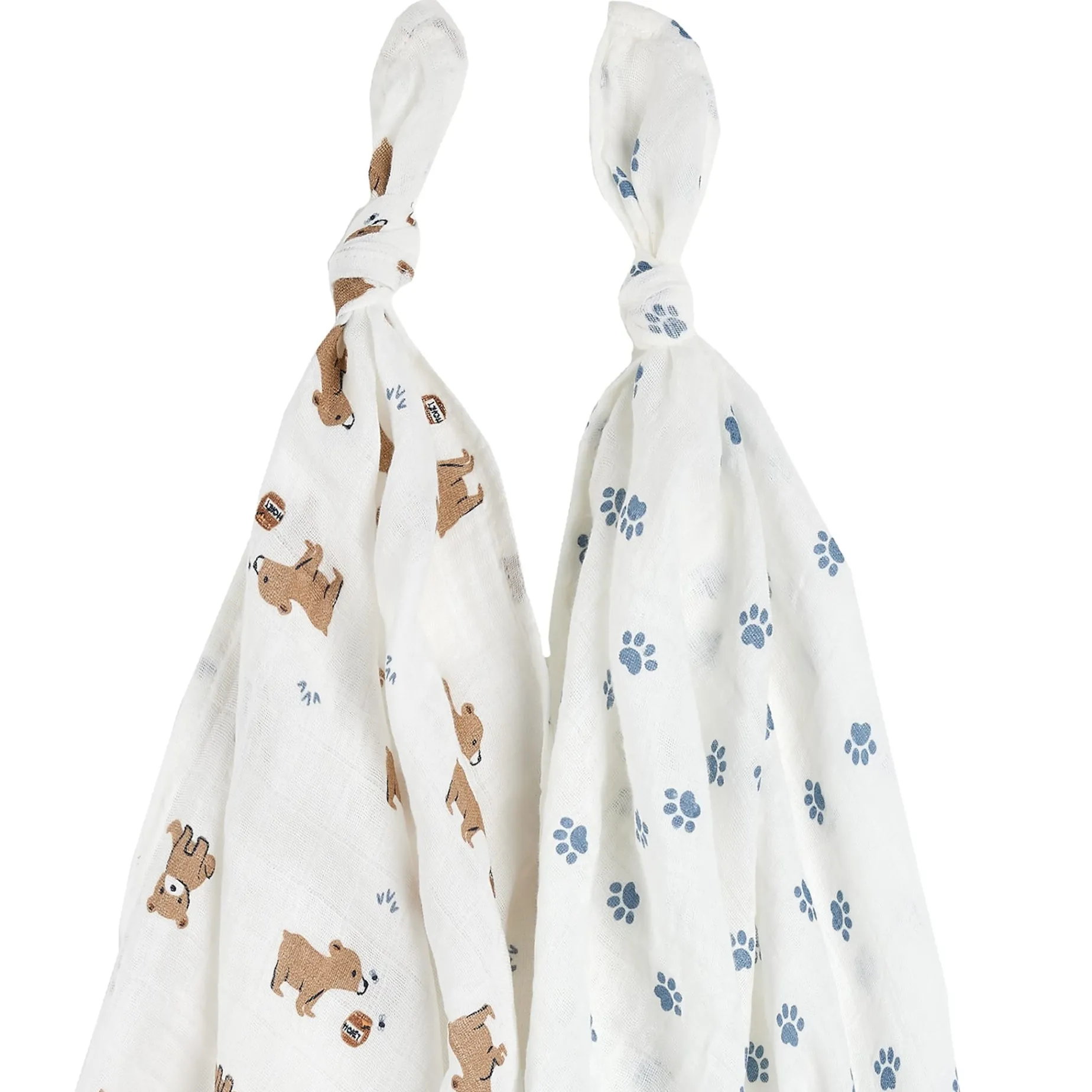 Softening over time, swaddle blankets provide comfort and warmth for little ones and are a lifesaver for you and your partner. With bear and paw prints, this two-pack coordinates perfectly with sleepwear and accessories from the same layette collection.