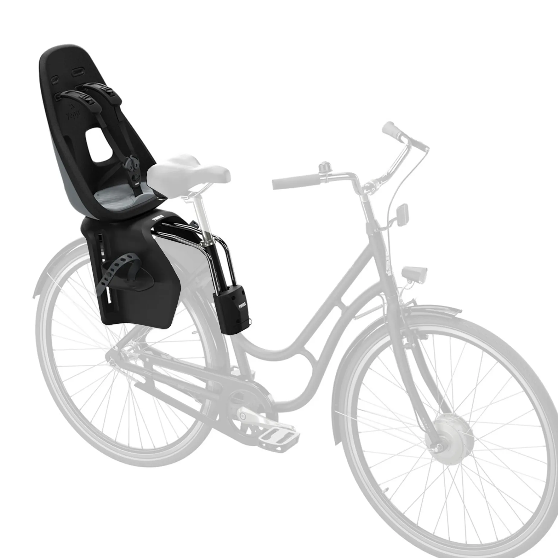 Lightweight and safe rear-frame-mounted child bike seat with a contemporary design, providing premium comfort for your child.
