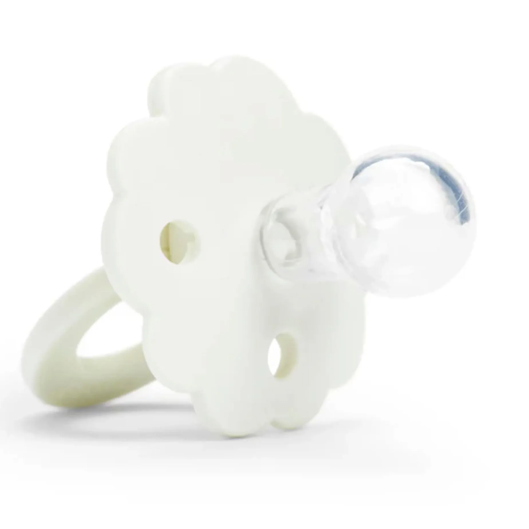 Triple ventilation holes: The pacifier’s shield is curved slightly outward and designed with ventilation holes that allow air to circulate around the mouth and helps prevent skin irritation.