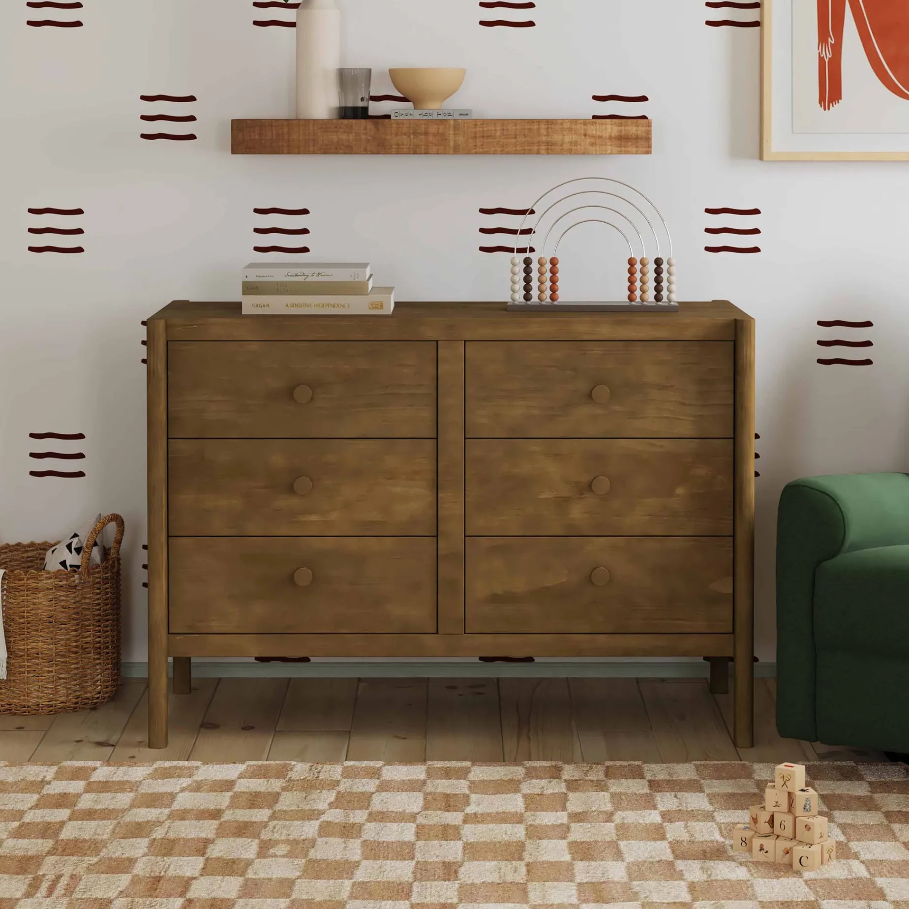 -The Birdie 6-Drawer Dresser offers a blend of style and versatility, designed to grow with your child.