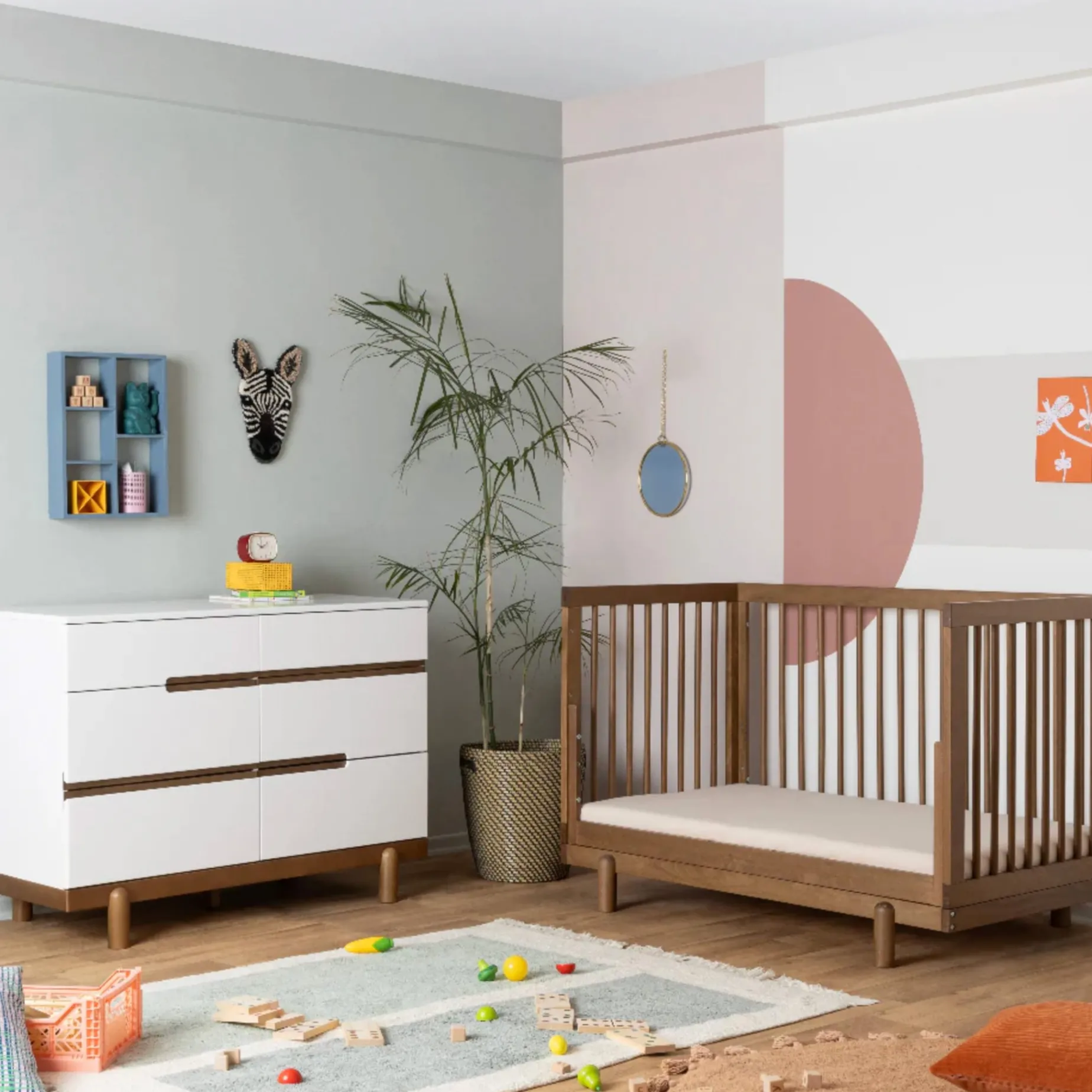 Experience organizational bliss with the 48″ Bliss 6-Drawer Dresser – a stylish solution for storing all of baby’s necessities. Its sturdy rubberwood legs and innovative drawer design bring a playful energy to any room. Use it alone or pair with a changing table to maximize space in the nursery (or anywhere else that could use some lighthearted organization).