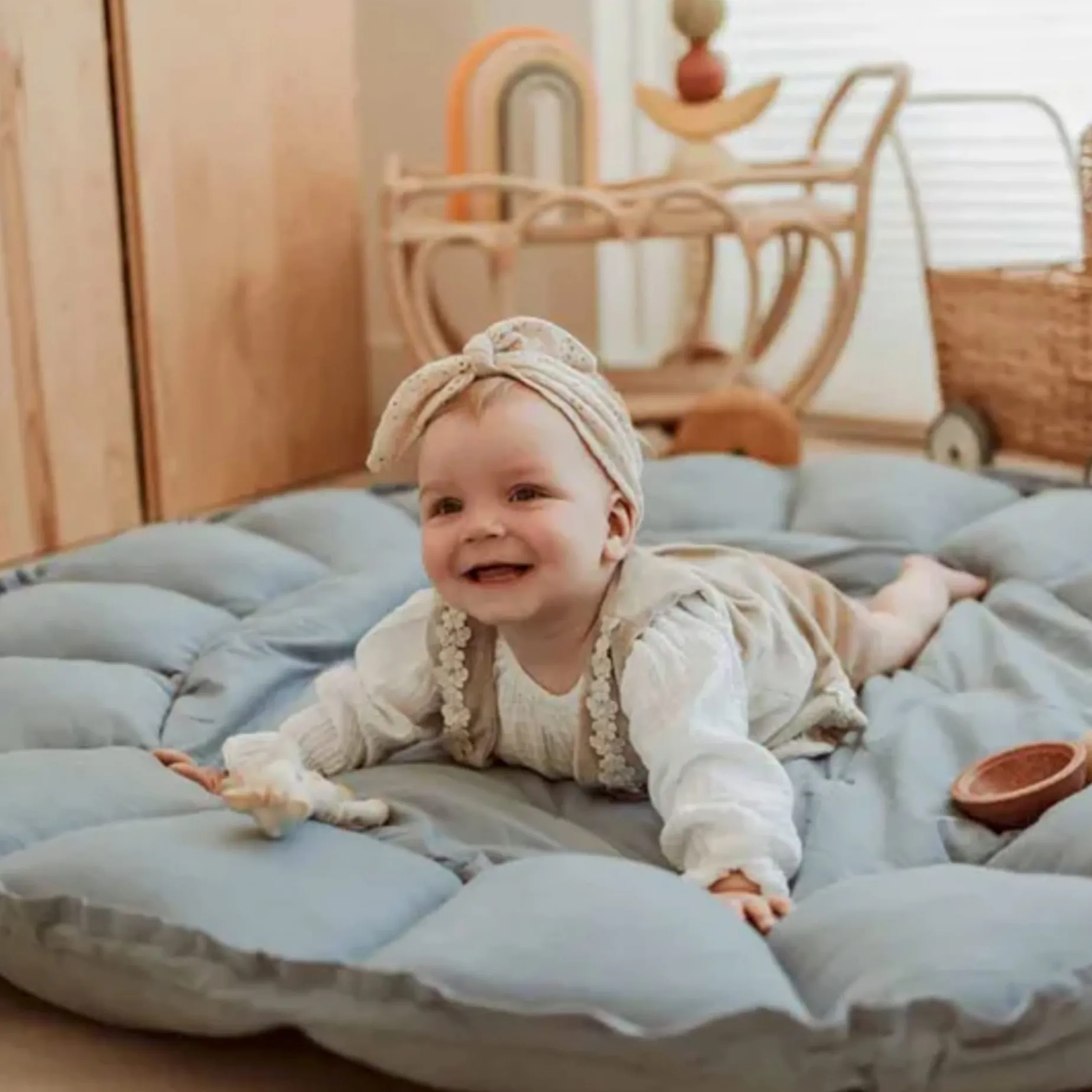Easy to use: To go from playmat to baby nest/storage, raise the petals by gently pulling the strings. Place the strings inside the pocket. Your Play&Go Bloom is ready for use.