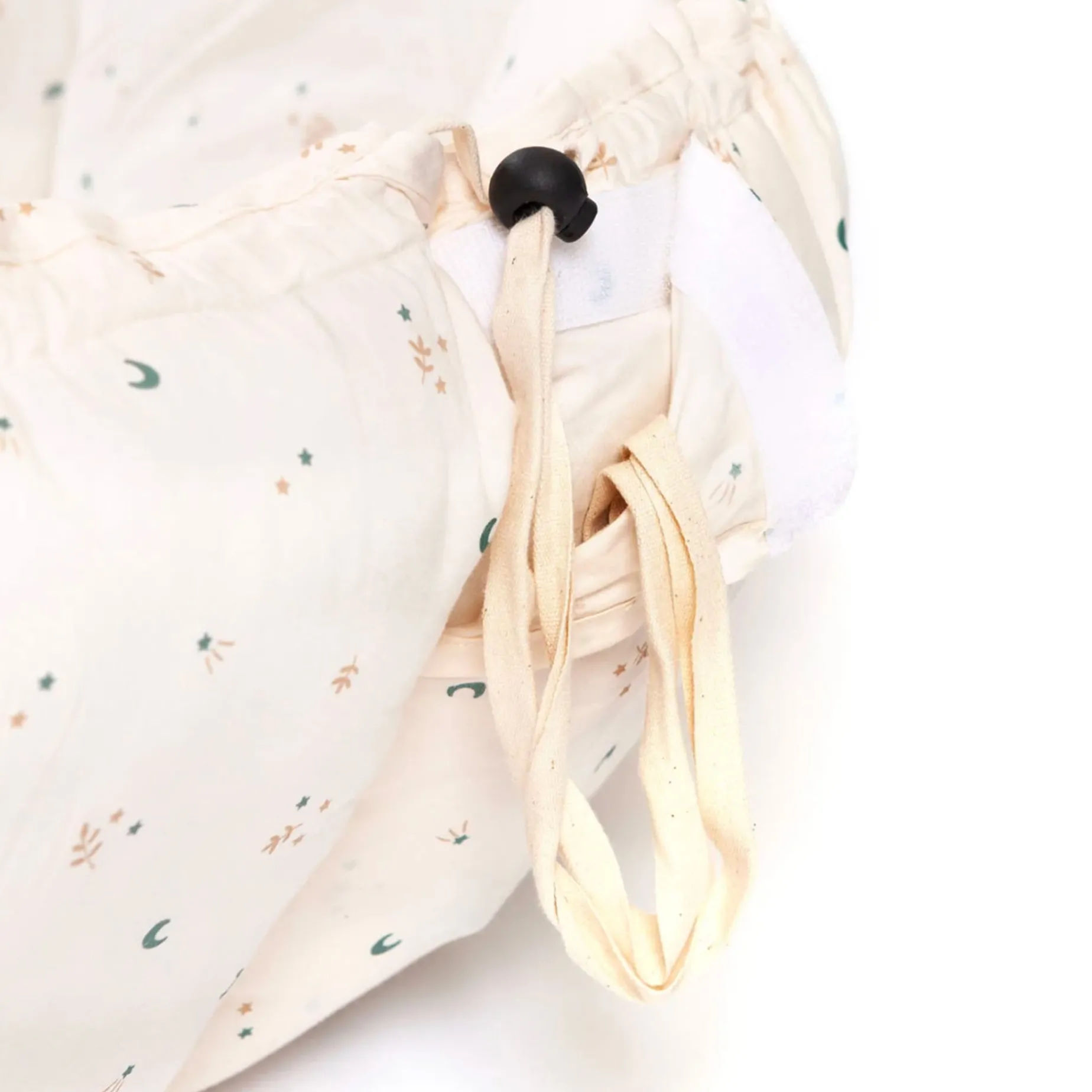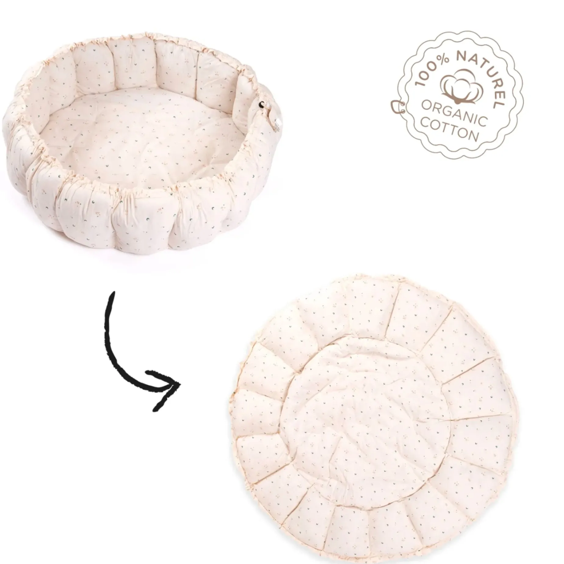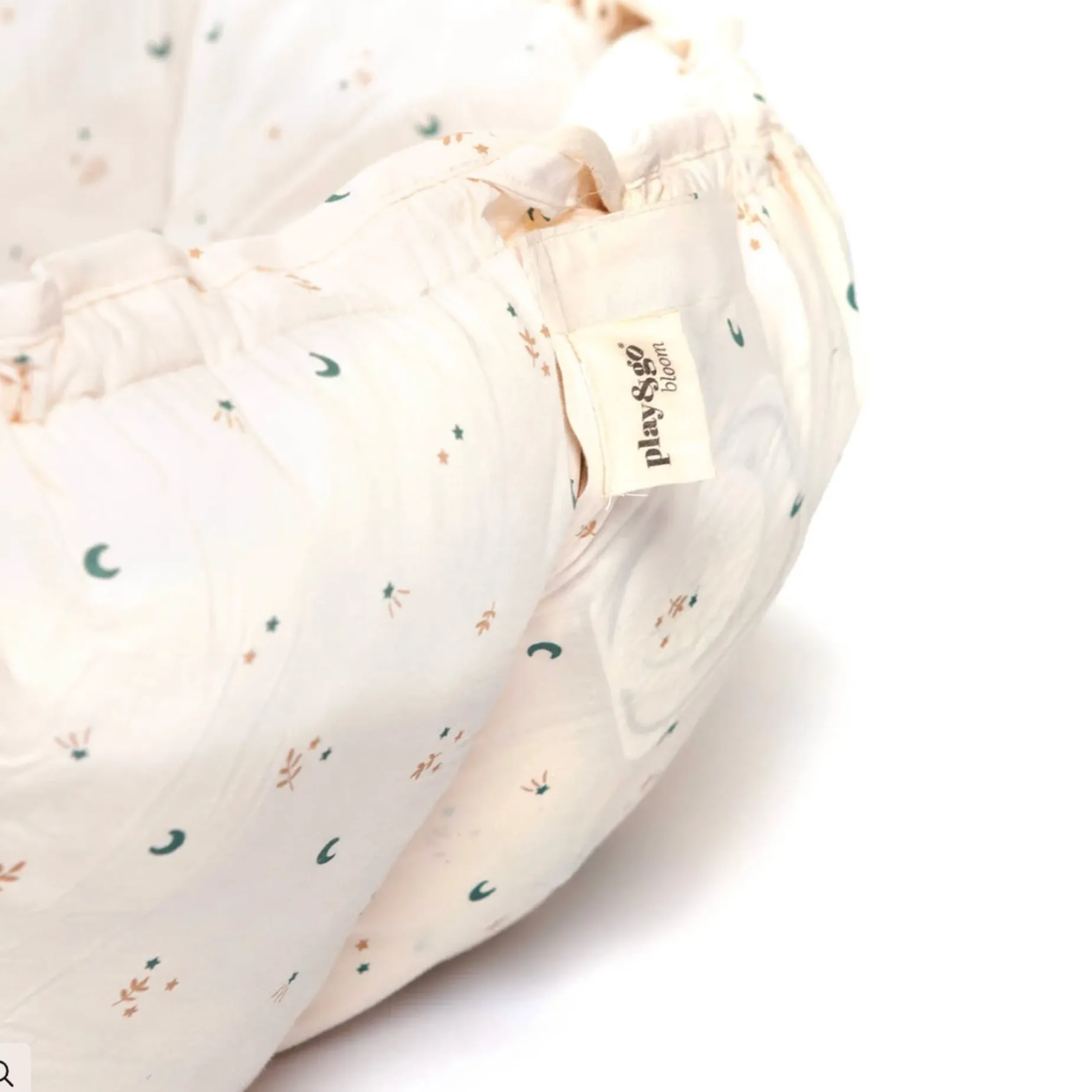 – To switch from playmat to babynest/storage, gently pull the strings to raise the petals