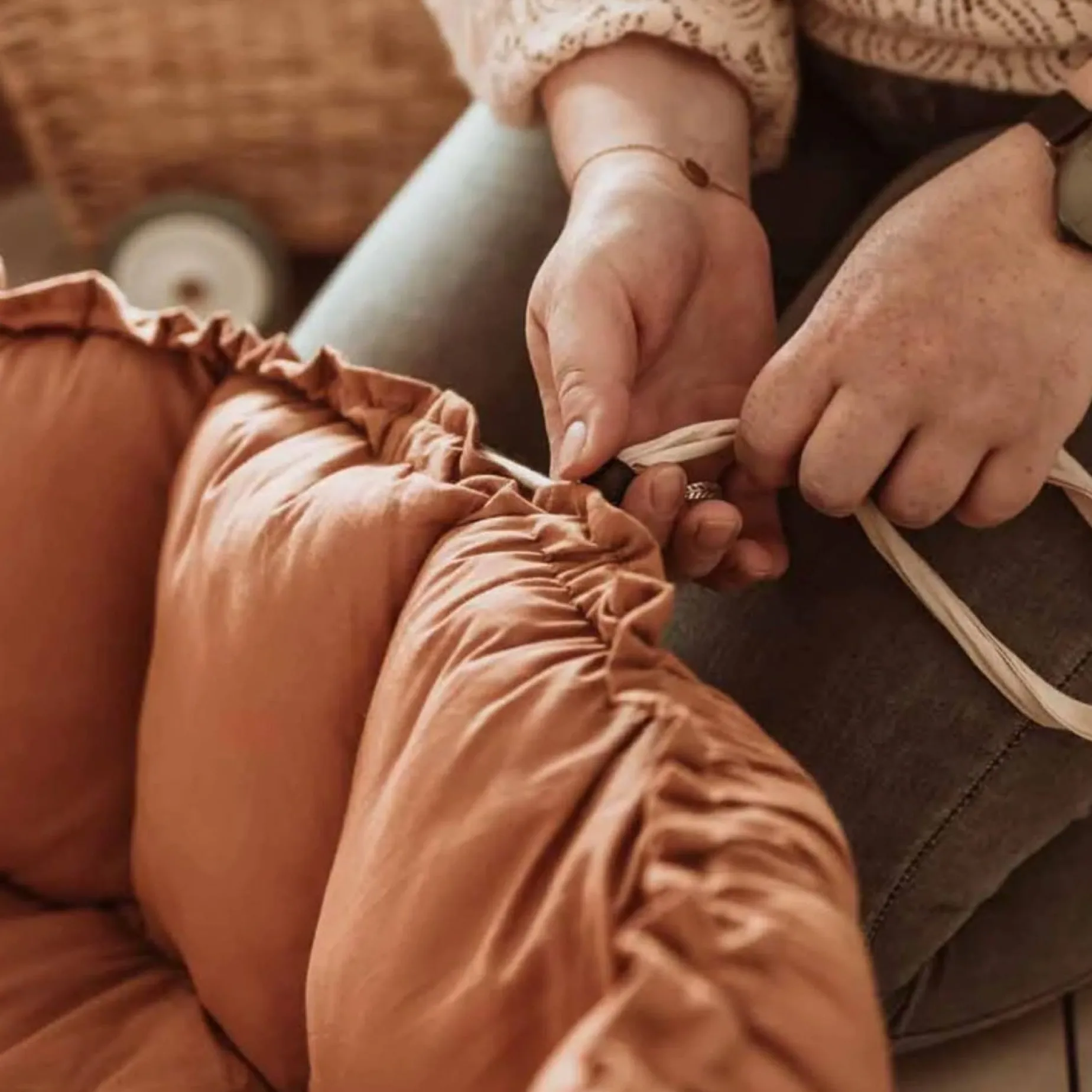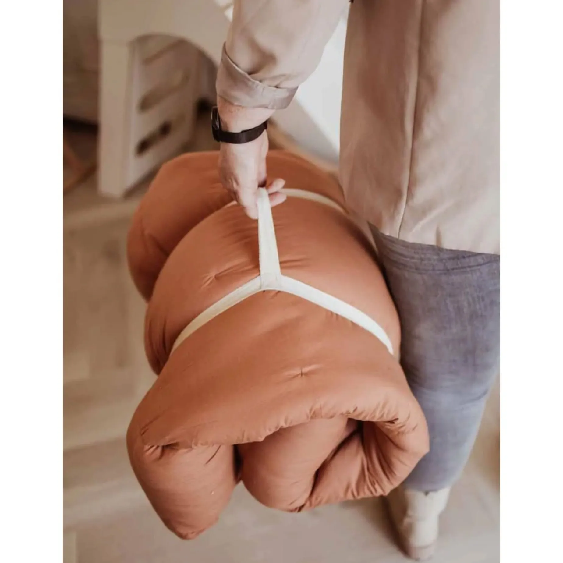 Easy to use: To go from playmat to babynest/storage, raise the petals by gently pulling the strings. Place the strings inside the pocket. Your Play&Go Bloom is ready for use.