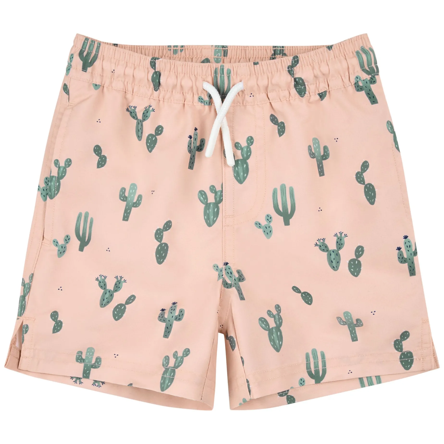 These totally on-trend swim trunks feature a Cacti print on a calming blush pink backdrop. Mix and match with one of our textured rash guards for delicate skin or for chilly days at the pool. With an elasticated, drawstring waistband, the swim trunks have a comfortable fit that can withstand all their jumping, splashing and playing. Made from easy breezy, quick-drying material and with built-in UPF50+ sun protection, there’s one less thing to worry about when heading to the beach.Â