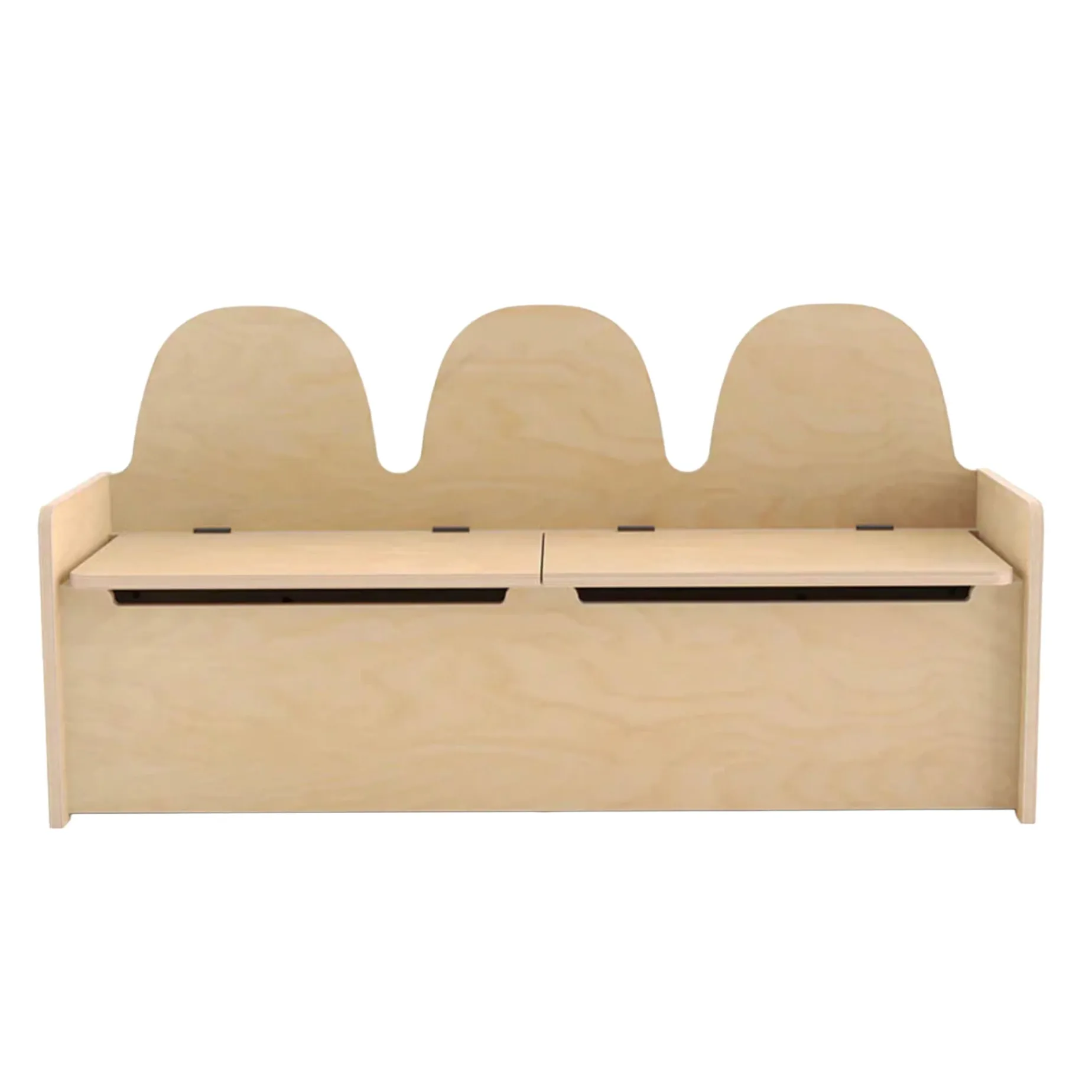 Storage meets seating in our clever Camel Storage Bench. Designed with little hands in mind, its soft-close lids stop just before closing, requiring a gentle push to shut fully for ultimate safety. Inside, two roomy compartments provide ample space for storing toys, games, costumes, or other essentials.