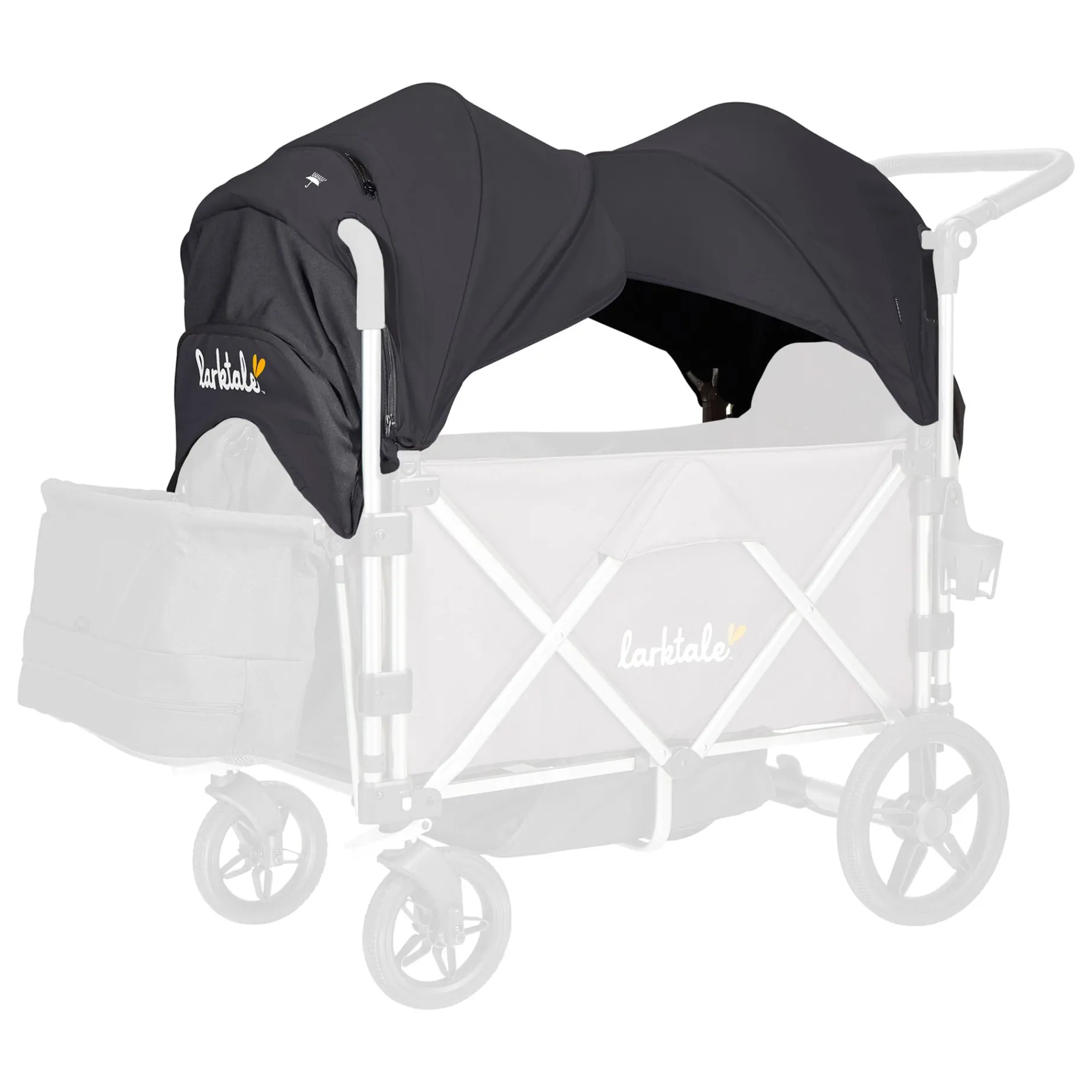 Your little Larktale riders can weather it all with the multi-purpose sun canopies for the Larktale caravan™ stroller/wagon (sold separately). This set of two sun canopies attach to protect each seat individually with a UPF50+ rating. Each sun canopy set features built-in protective rain and bug covers that extend over the entire caravan™ but cleverly stow away when not in use.