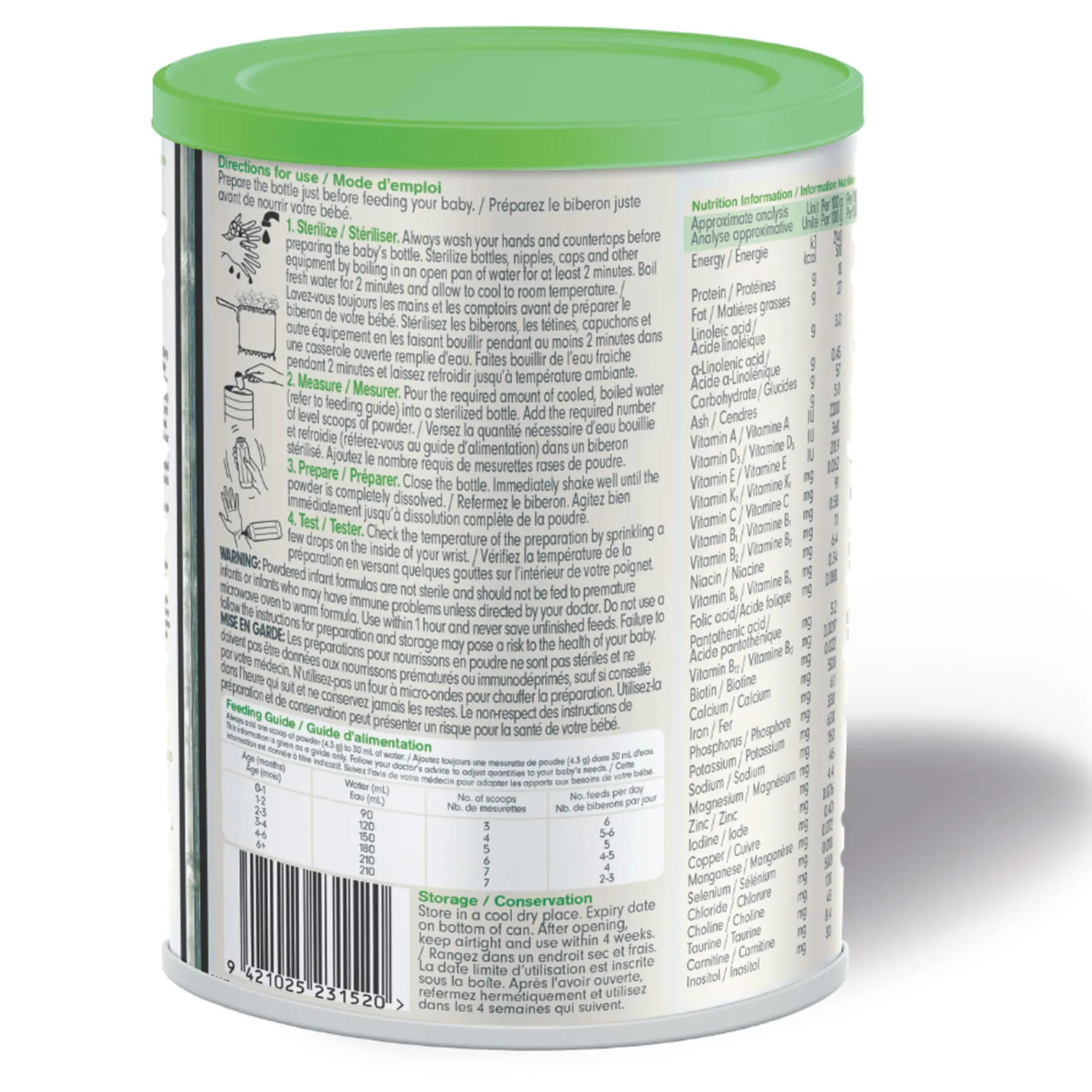 Pasteurized whole goat milk, lactose (cow’s milk), vegetable oils (sunflower, canola), goat milk powder, fish oil (DHA), microbial oil (AA), minerals, vitamins, choline, amino acids (tyrosine, tryptophan…), taurine, carnitine, inositol.