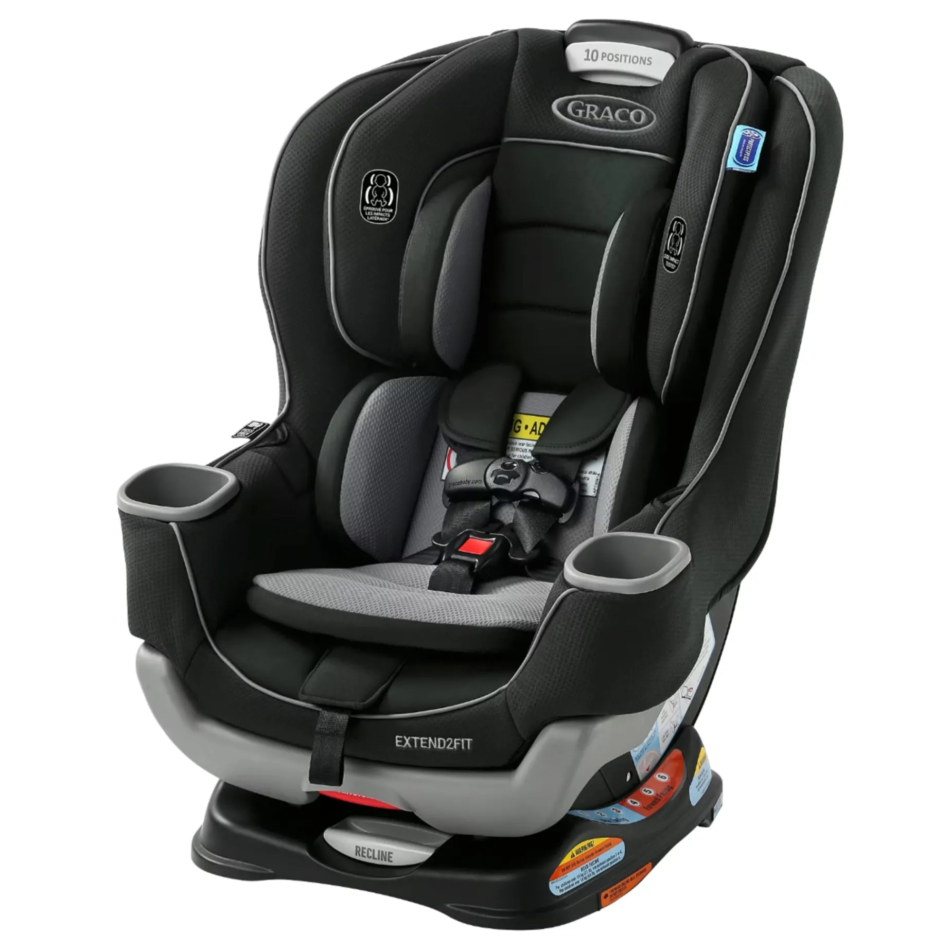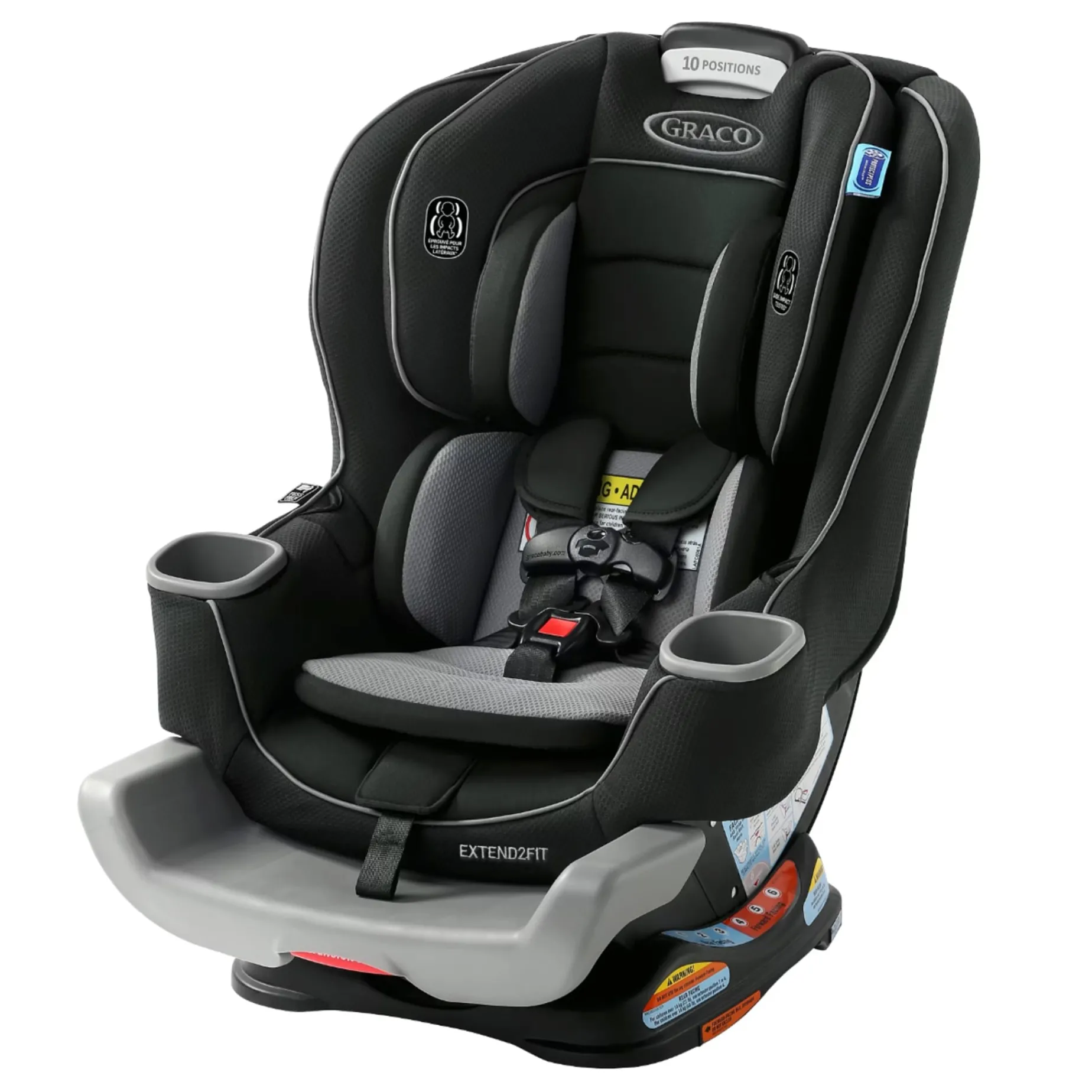 Extend2Fit™ 4-position adjustable extension panel provides up to 12.7 cm (5″) additional legroom, allowing your child to safely ride rear-facing longer