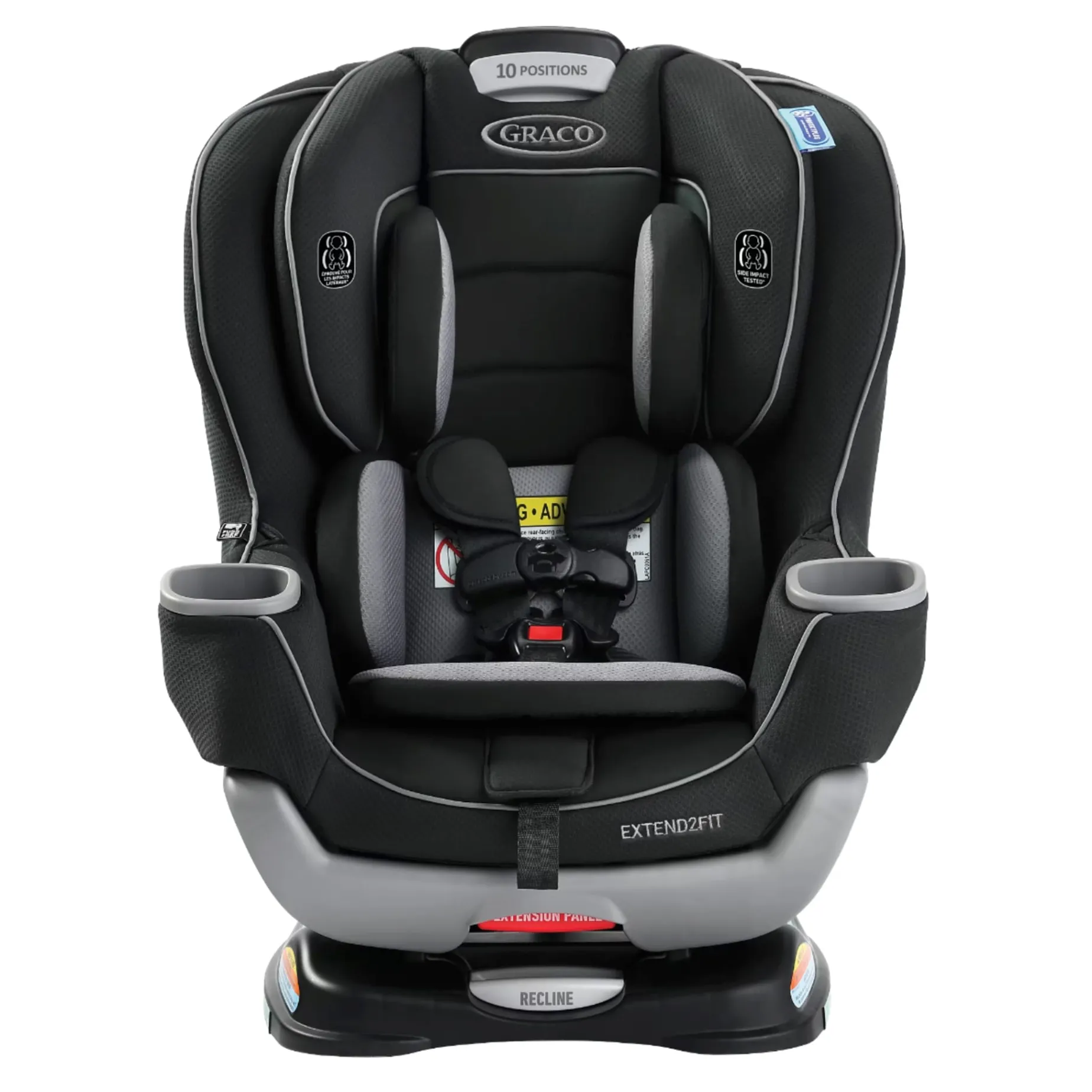 Safely ride rear-facing longer! The Graco® Extend2Fit™ Convertible Car Seat grows with your child from rear-facing harness 1.8-22.5 kg (4-50 lb) to forward-facing harness 10-30 kg (22-65 lb). It features a 4-position extension panel that provides up to 12.7 cm (5”) of extra rear-facing legroom, allowing your child to safely ride rear-facing longer. Children are safer riding rear-facing and should ride rear-facing as long as possible, until they reach the maximum rear-facing height or weight rating for their car seat. With Extend2Fit™, the adjustable extension panel and 22.5 kg (50 lb) rear-facing weight limit allow the seat to grow with your child in rear-facing mode, providing extended rear-facing use. The seat features the No-Rethread Simply Safe Adjust™ Harness System, which allows you to adjust the height of the headrest and harness in one motion, and InRight™ UAS for a one-second UAS attachment. Harnessing is made easier with fuss-free harness storage pockets that conveniently hold the harness out of the way while you get baby in and out of the car seat. This car seat is Graco® ProtectPlus Engineered™ to help protect in frontal, side, rear, and rollover crashes.