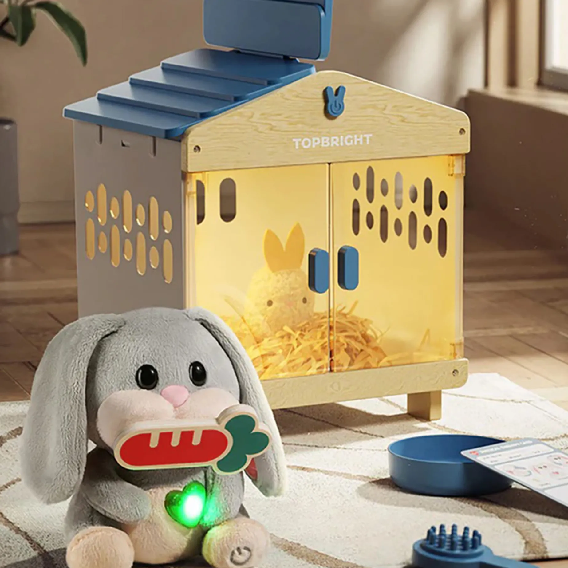 This interactive set features an ultra-soft plush bunny that reacts to touch and communicates her needs through a multi-colored LED heart. Children learn empathy and responsibility by caring for their new friend: when her heart glows red, she needs attention! By using the included accessories like the wooden carrot, comb, and feeding bowl, little ones can feed and groom Mummy Bunny until her heart turns green, showing she is happy and content. The most rewarding moment happens after completing the three care tasks: place Mummy in her interactive hutch, and after 10 minutes, a surprise baby bunny magically appears! This process encourages patience, logic, and narrative role-play. It is the perfect blend of snuggly comfort, emotional development, and technological wonder for future pet owners.