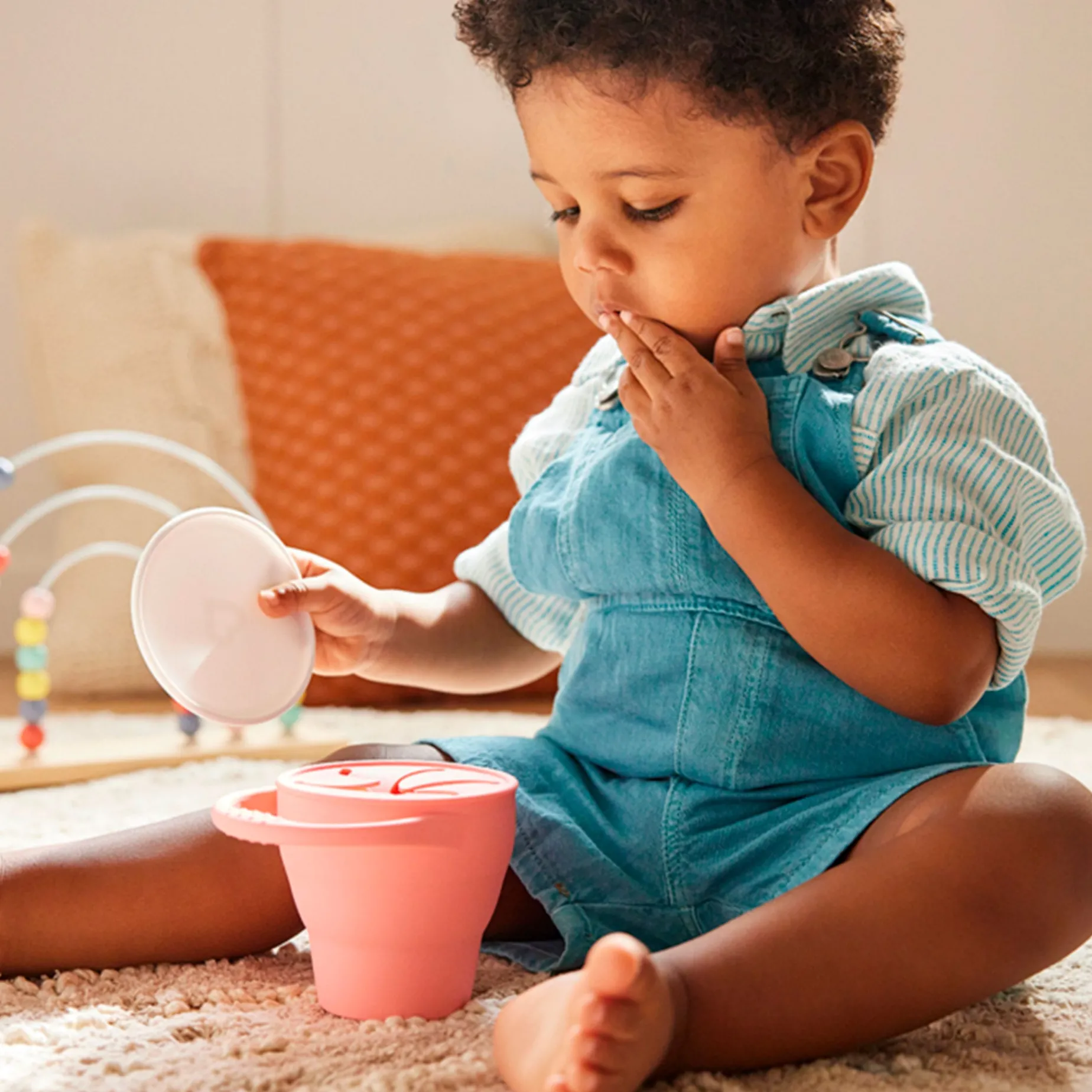 Meet the C’est Silicone!™ Snack Catcher. Made of 100% food-grade silicone, it’s just the right size, soft on small hands and completely collapsible for storage and travel. Flexible crumb-trapping flaps and a secure handle allow toddlers to feed themselves with confidence and a lot less mess. Whether around the house or in the back seat, kids love its easy access and parents love its spill-proof design.