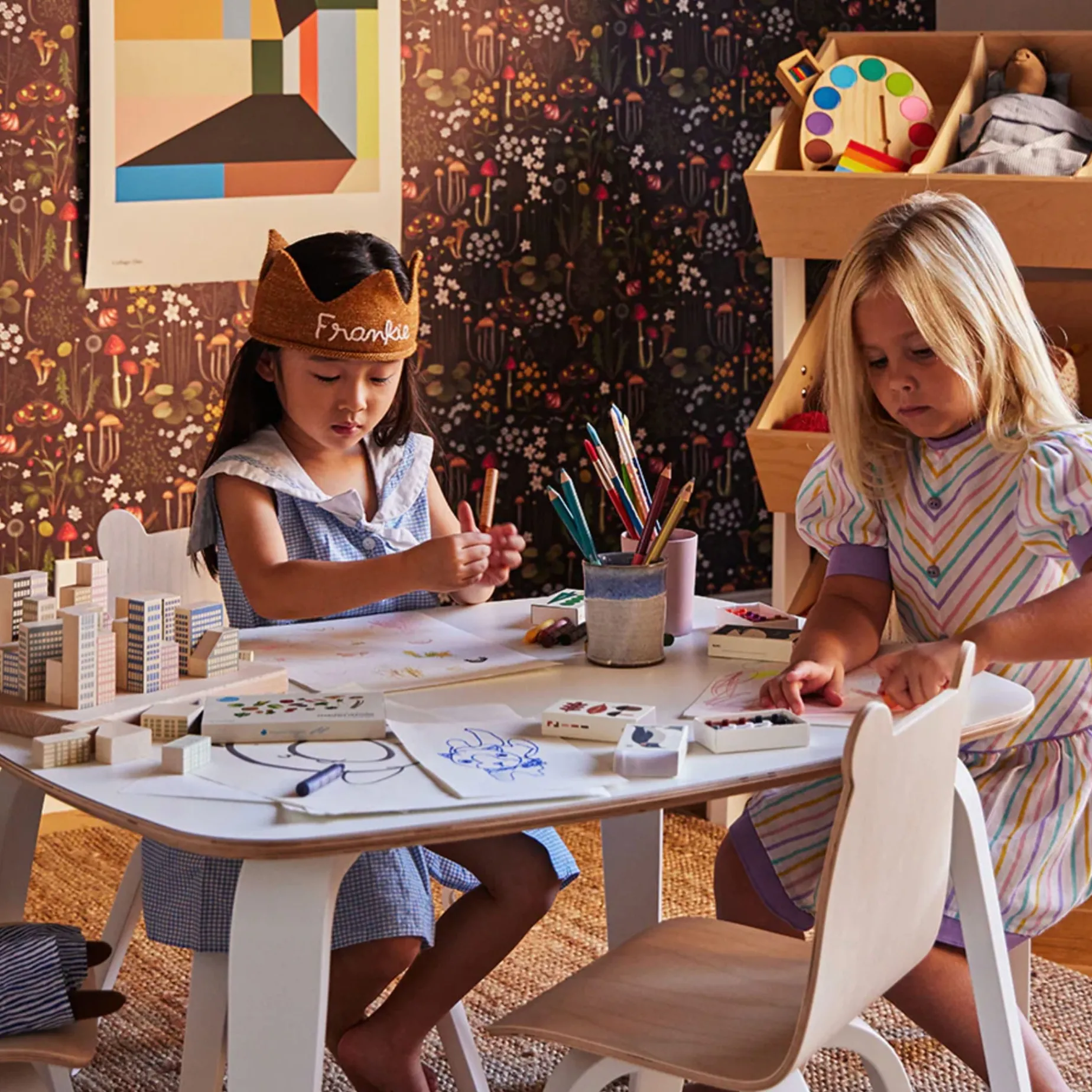 These adorable bear-eared bent plywood chairs are sold in sets of two. Fitting perfectly with the Oeuf play table, they are sure to inspire a bit of extra fun while your child creates, snacks, or reads in their very own, kid-sized chair.