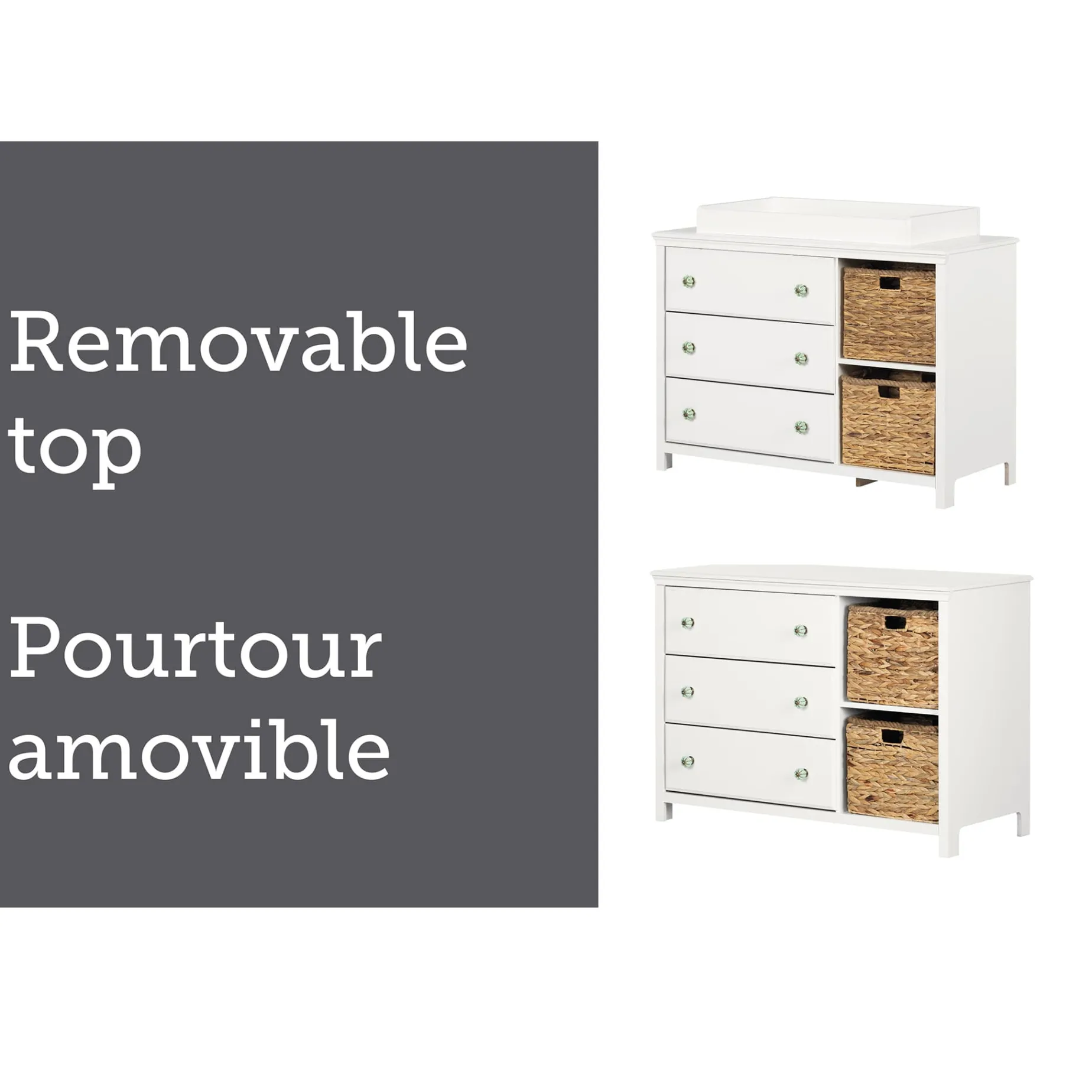 EVOLVES AS YOUR CHILD GROWS: This changing table will evolve as your child grows older. The rim is easy to remove, so the piece can become a dresser. You’ll just have to redecorate, without changing this piece of furniture.