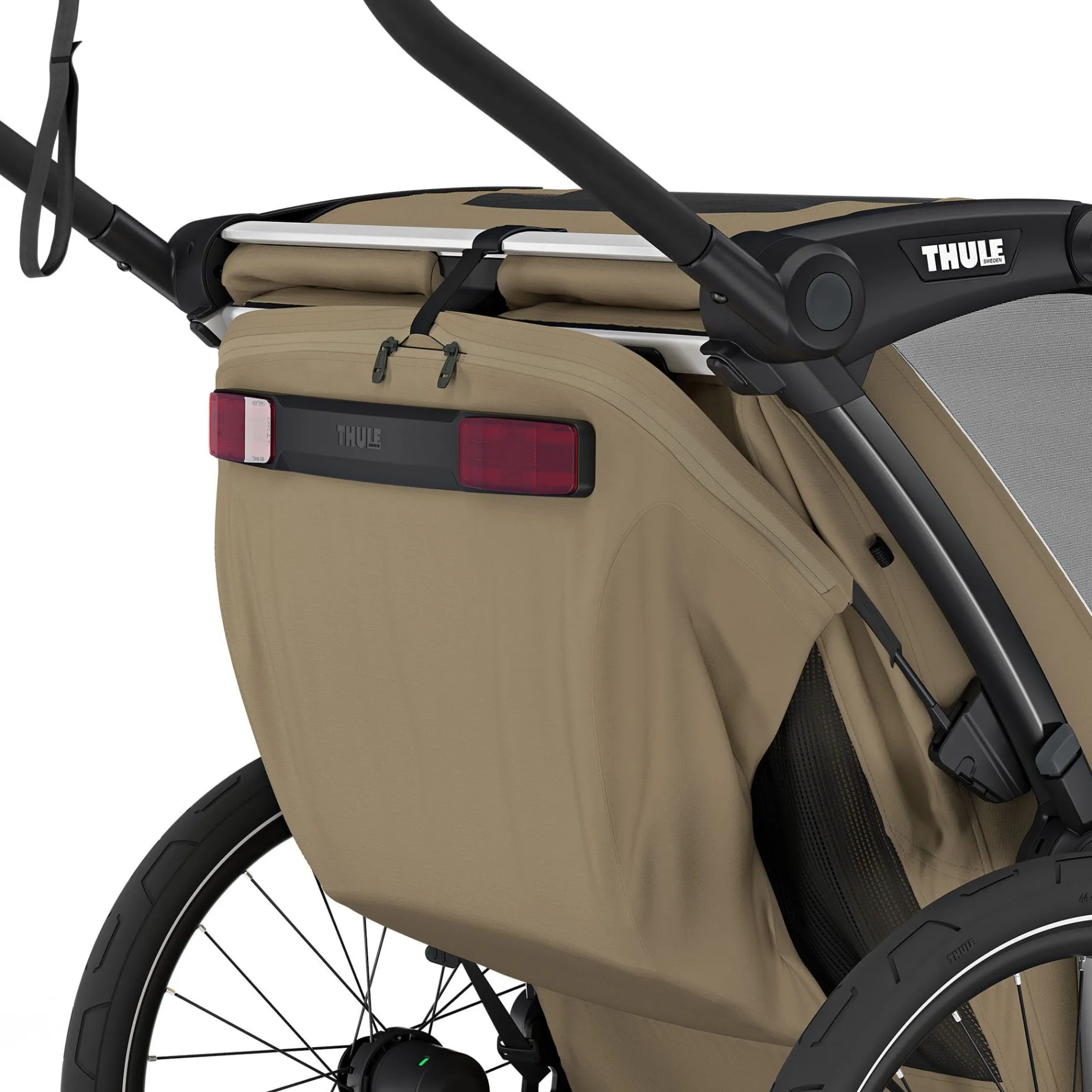 Made for daily commutes, Thule Chariot Cross 2 double is a robust and safe trailer for heavy use in all conditions. It lets you experience easy transitions between cycling and strolling – a quick, one-handed wheel rotation turns the bike trailer into a stroller in seconds.