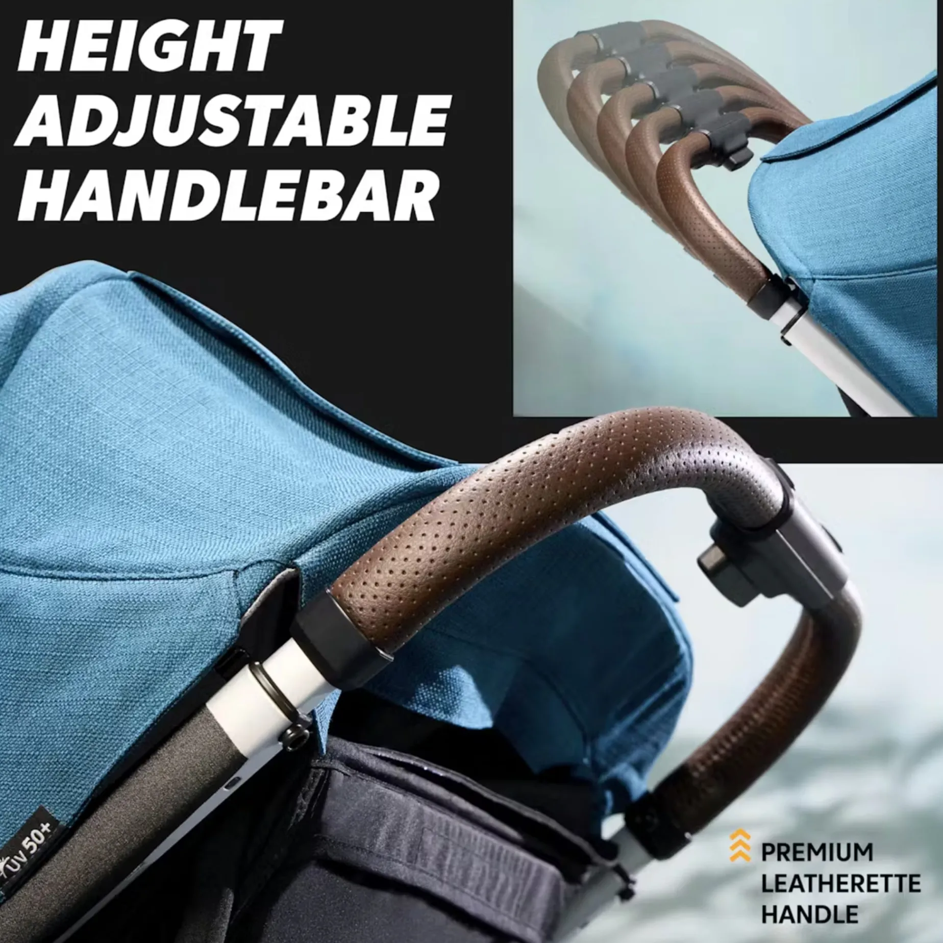 Durability tested. Premium design. One-hand fold. The Baby Jogger® city mini® GT3 stroller is built to adventure off the beaten path. Made to conquer city streets and forest trails, the forever air rubber tires and all-wheel suspension let you push the boundaries on your adventures. The signature one-hand, in-seat fold keeps you on the go and enables you and your mini to Adventure Together. The self-standing fold allows for easy storage and helps keep the stroller clean in public places because you won’t have to lay it down. Experience a premium push with a height-adjustable leatherette handlebar, magnetic buckle, and a spacious storage basket. As your kid grows taller, adjust the harness straps by simply pulling up and positioning them at the next level. Let your little one get comfortable with adjustable calf support and a near-flat reclining seat with the pull of a tab. When your rider wants to sit up, simply push the back of the stroller seat to the upright position—no unnecessary straps or steps. The functional canopy offers three ventilation panels with magnetic closures, so you don’t have to wake up your rider when checking on them. The included infant car seat adapters are compatible with all Baby Jogger and Graco® infant car seats to make your own travel system. Because it is part of the Baby Jogger eco collection, this stroller features soft fabrics made with recycled materials.