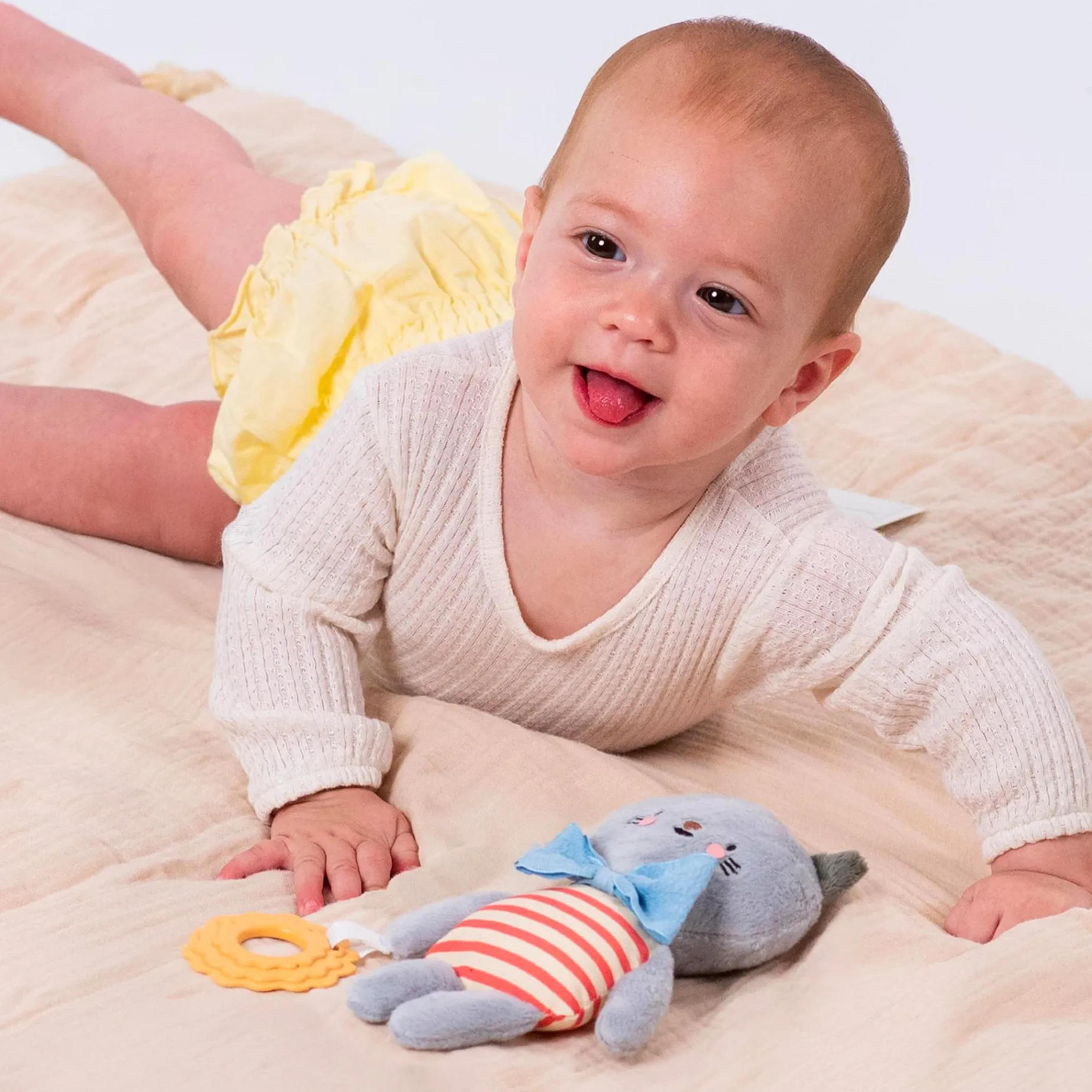 This adorable soft toy and teether is designed to provide a multi-sensory experience for your little one. With various textures, patterns, and sounds, it keeps little hands active as they discover the fun of rattles, crinkles, and more. Perfect for use at home or on-the-go, this cute Clara Kitten is sure to become a favorite companion