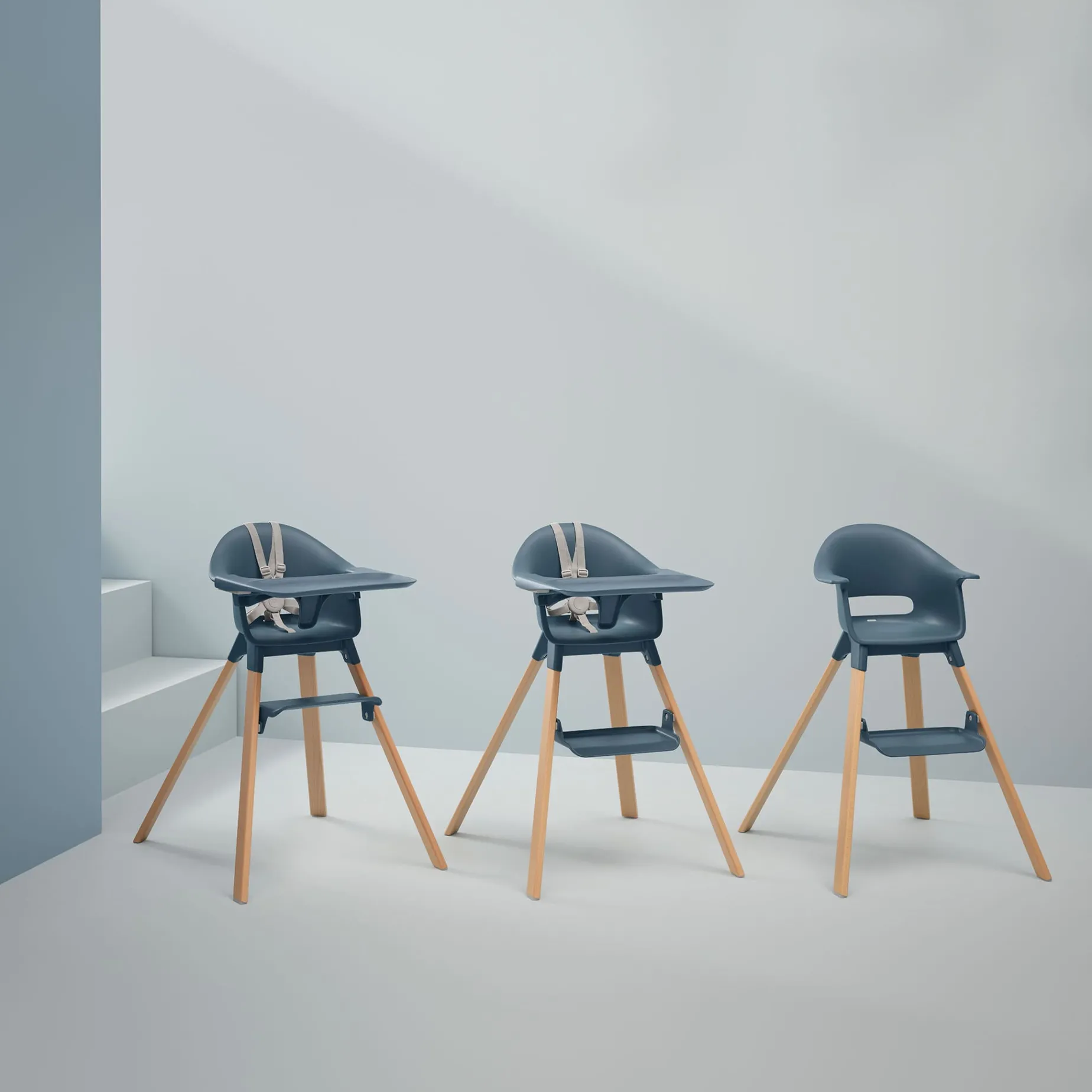 One minute, tool-free assembly means you’re ready to eat, play, clean and get on with the rest of your day effortlessly. Your Stokke®Clikk™ comes with everything you need including matching tray and five-point harness for safety and peace of mind. Clean, contemporary design, without any nooks or crannies means no more scrubbing and digging out the secret leftovers of your baby’s wandering hands. Stokke® Clikk™ can be used from 6 months to 3 years.. The deliberately minimalistic design offers the best balance of space and safety. Stokke® Clikk™ allows for proper strengthening of the spine, natural movements and supported exploration as your baby learns and develops alongside you at the family dining table.