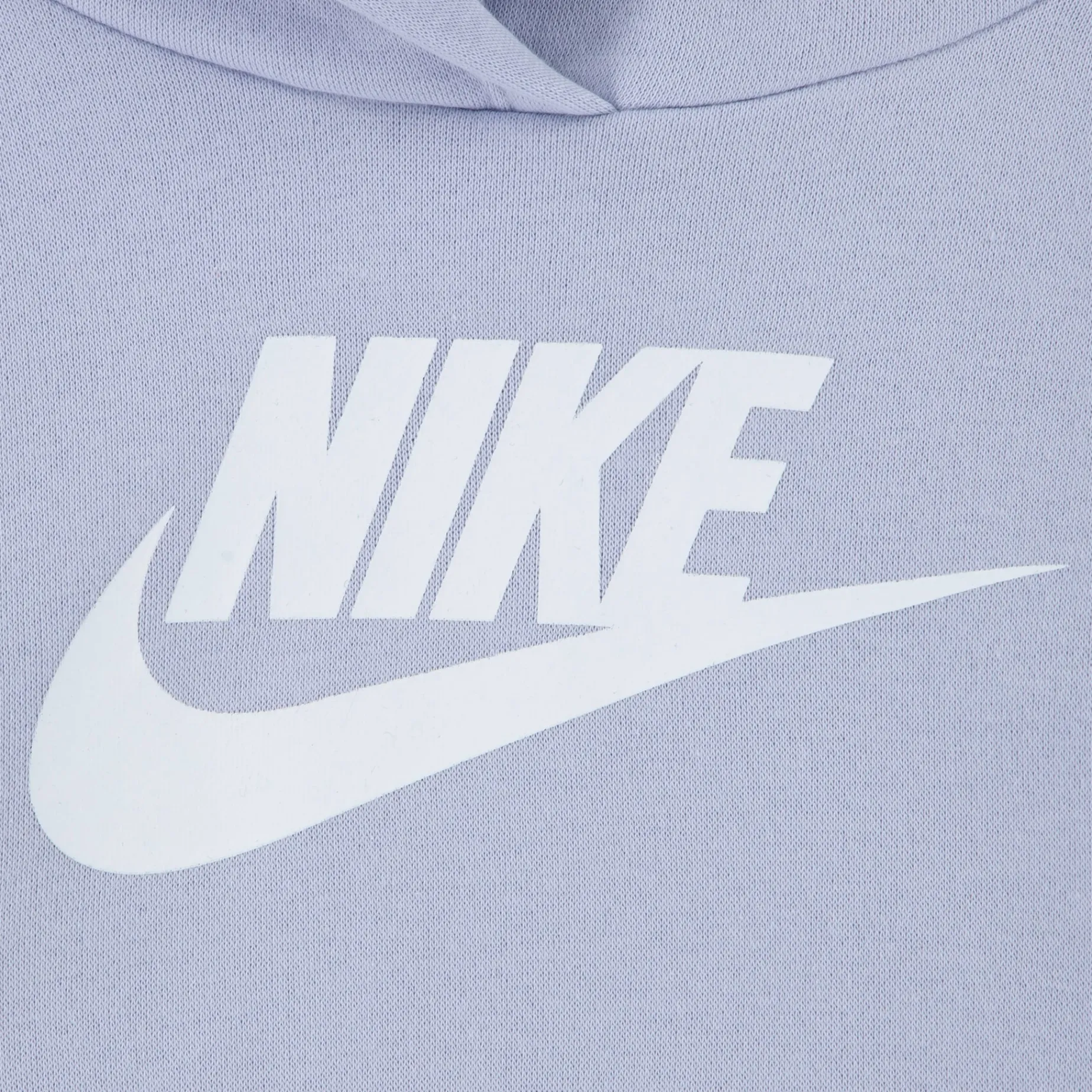 Looking for an easy way to outfit your little one when the weather starts to get a little chilly? This 2-piece Nike set, made of soft cotton/poly fleece fabric, has you both covered. The pullover hoodie is roomy enough to layer over a tee or tank and the matching tapered pants have a stretchy waistband for a comfy fit.