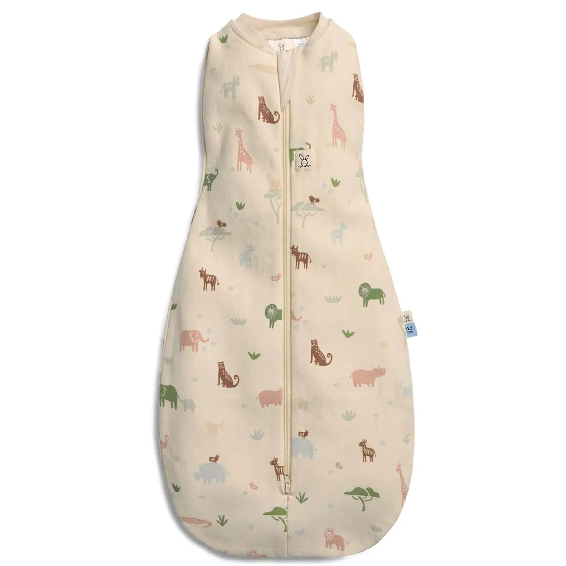 The Cocoon swaddle sleeping bag is made from GOTS-certified organic cotton with a touch of elastane. This means it is firm enough to limit the startle reflex while still allowing for stretch and movement to support healthy growth. Its elasticity also allows for full chest expansion when breathing, providing extra comfort, and allows baby to move their hands into a self-soothing position inside the sleeping bag. The soft, breathable organic cotton is certified non-toxic, dyed with water-based dyes, and gentle on newborn skin, including eczema-prone skin. A zipper closure also protects your child’s delicate skin, and the convenient snaps allow you to transition from an arms-in swaddle to an arms-out sleeping bag when baby begins to show signs of rolling over.