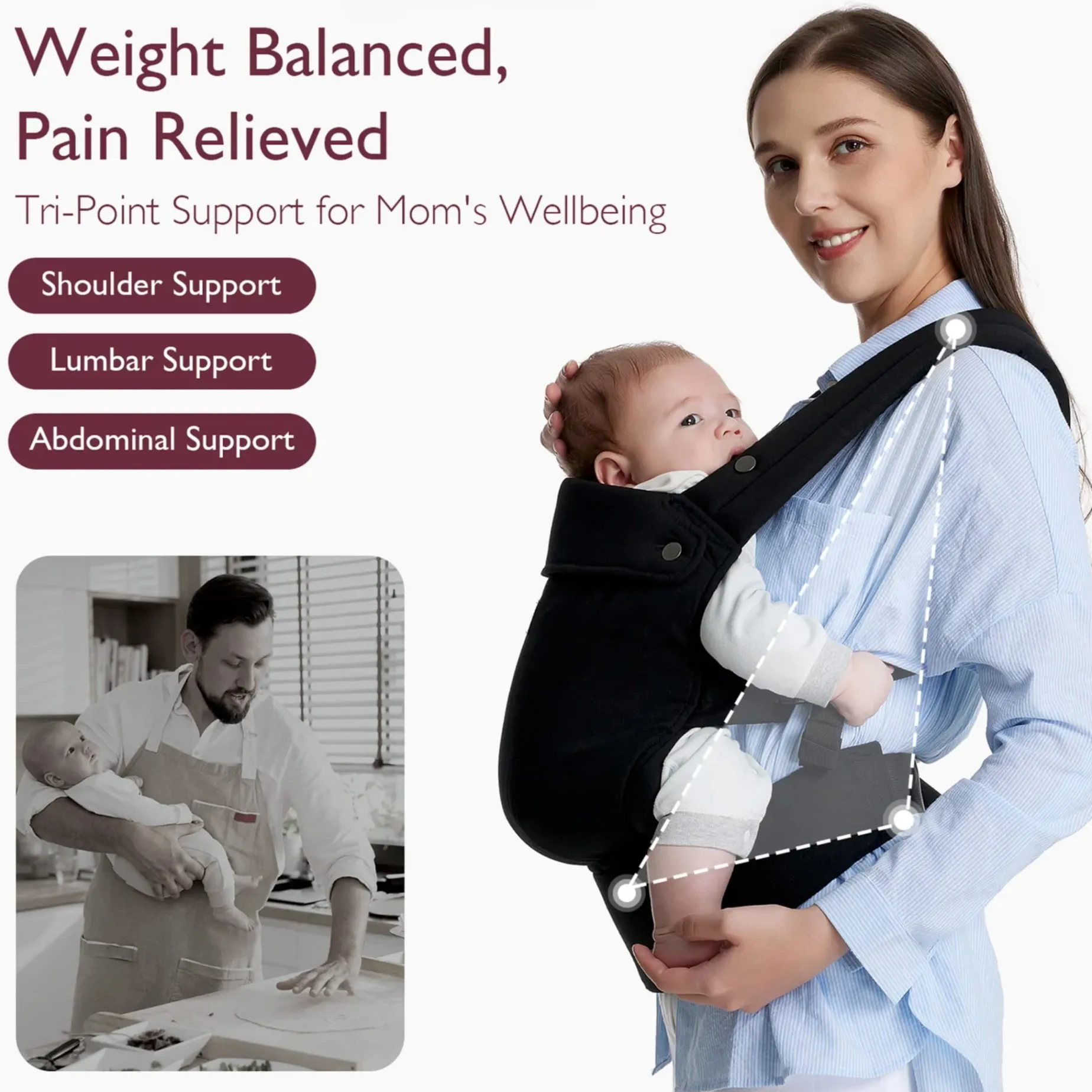 3-in-1 Baby Carrier perfect for experiencing hands-free convenience in everyday use, outing or travel. Lightweight design and effortless wearability, Momcozy’s original baby carrier is an ideal choice for travel and busy lifestyles. It ensures both comfort and elegance as you carry your little one while on the move.