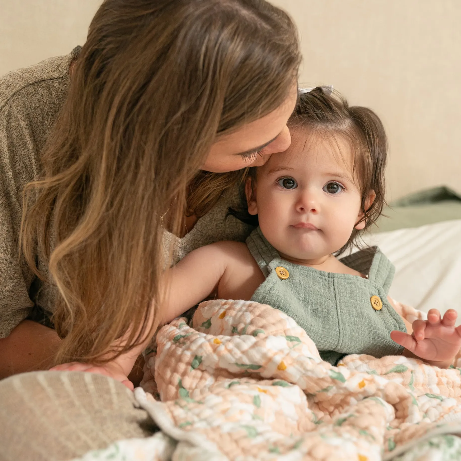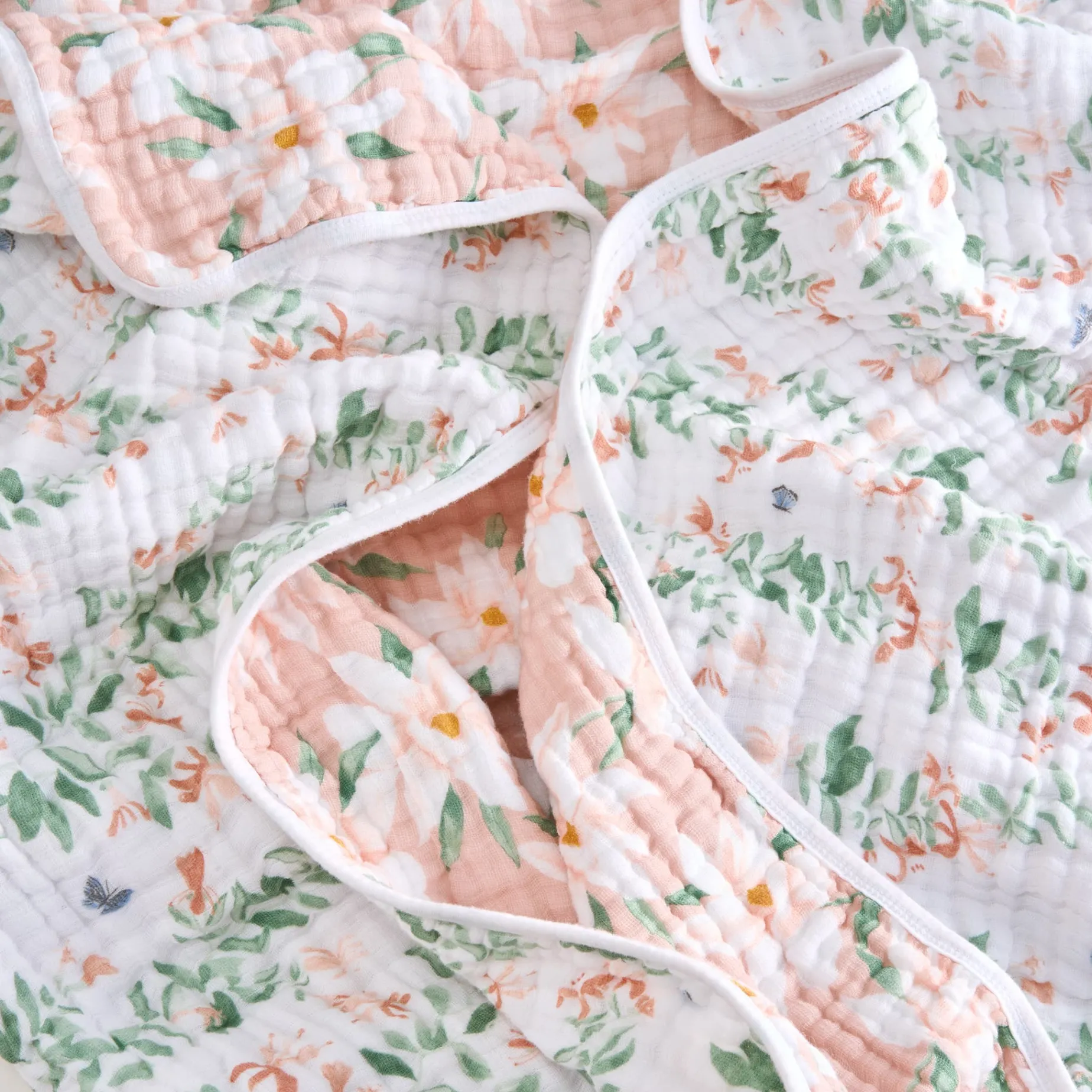 Four layers of cotton muslin create the perfect cozy cloud for your little. Our blankets are soft, warm, absorbent + lightweight – the total package! Great for snuggling, tummy time, picnics, or walks in the stroller.