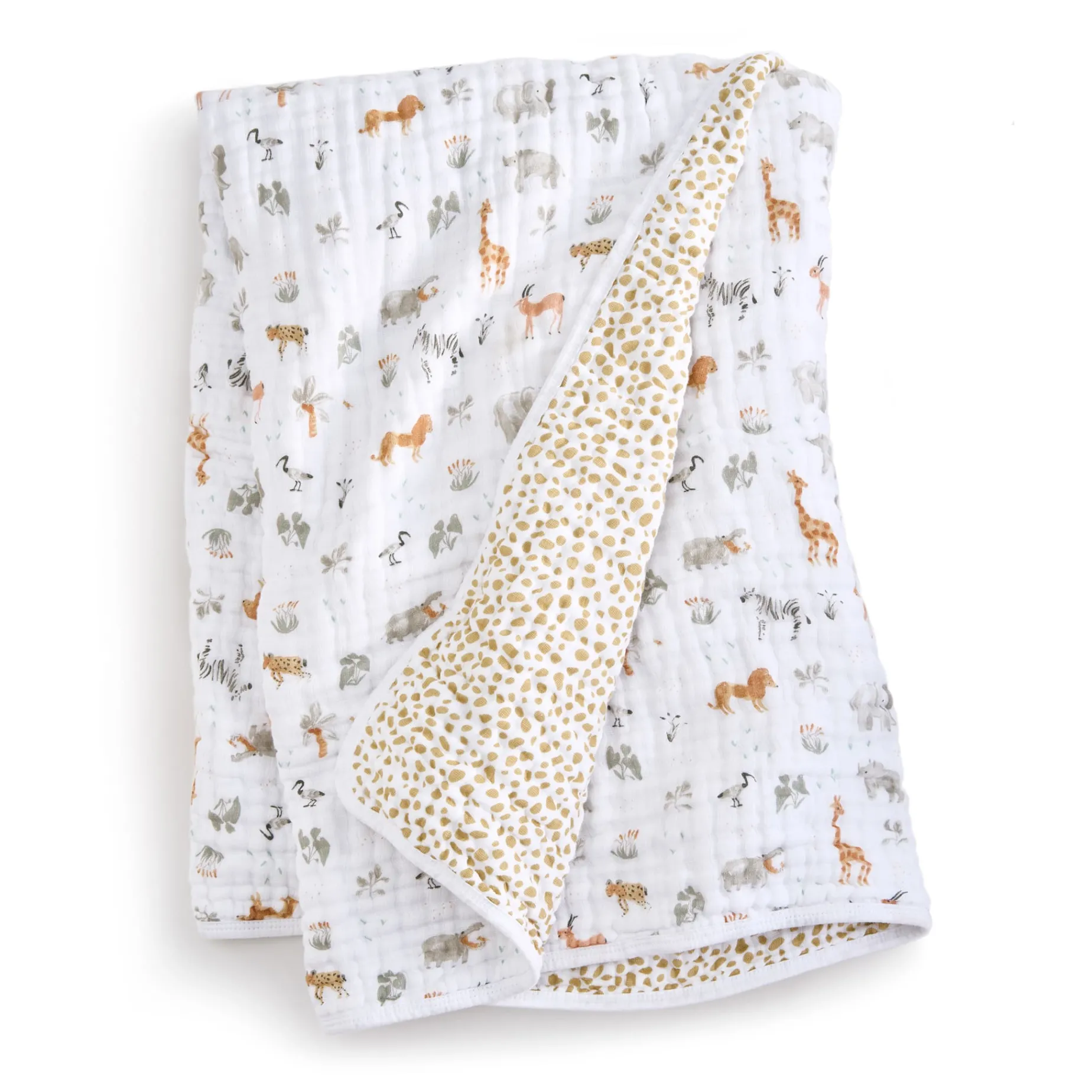 Four layers of cotton muslin create the perfect cozy cloud for your little. Our blankets are soft, warm, absorbent + lightweight – the total package! Great for snuggling, tummy time, picnics, or walks in the stroller.