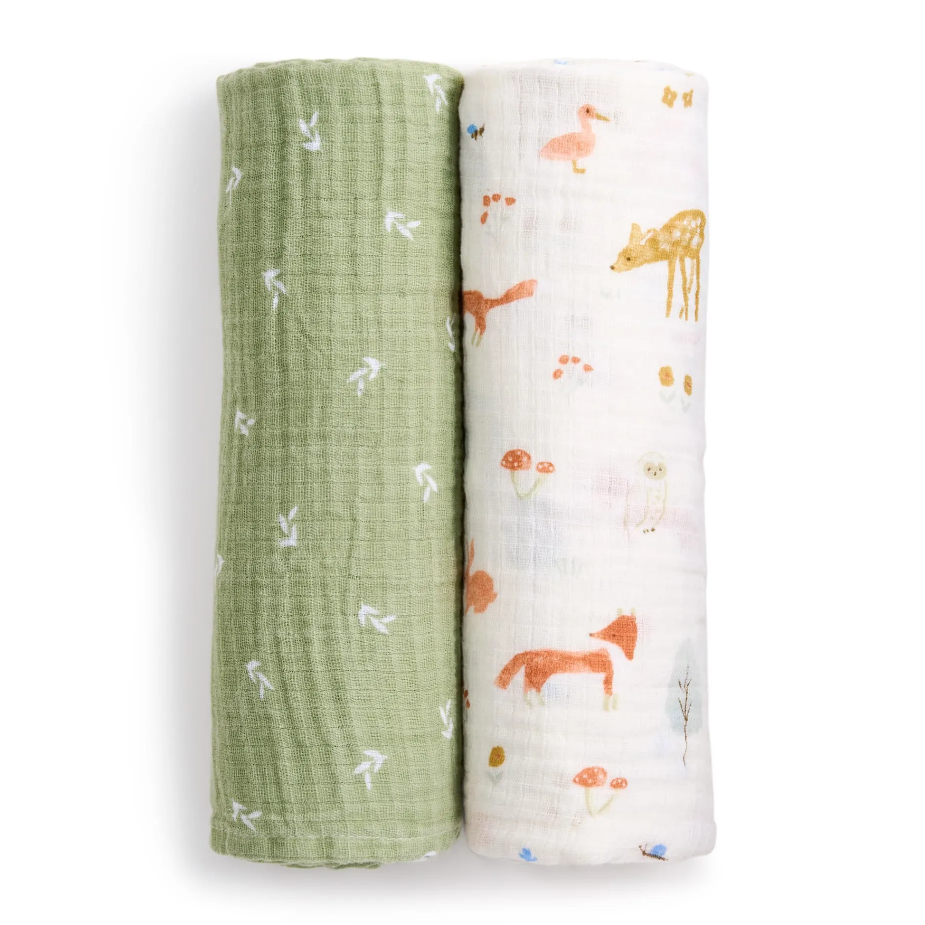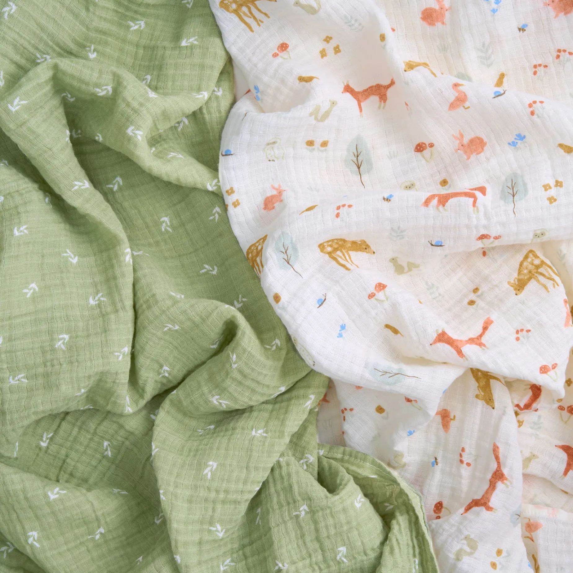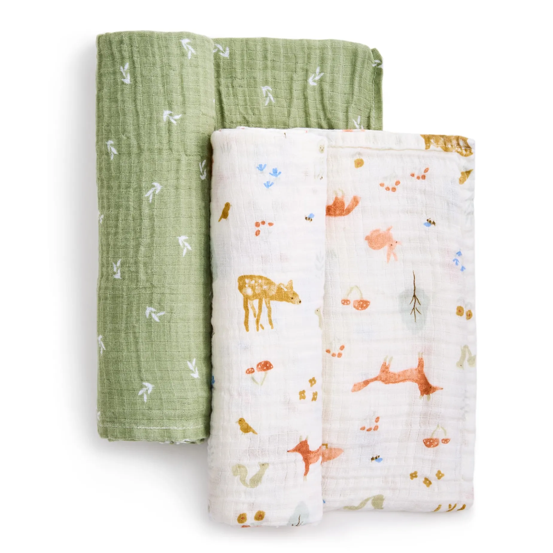 Cotton muslin is classically breathable + extremely versatile for bedtime + beyond. The Essentials Muslin Swaddles are your go-to basic for whatever the day throws your way. They can be a clean surface for diaper changes, sop up a mess, offer privacy for nursing, or a soft spot for playtime. These 2-pack make it easy to always have one on hand.