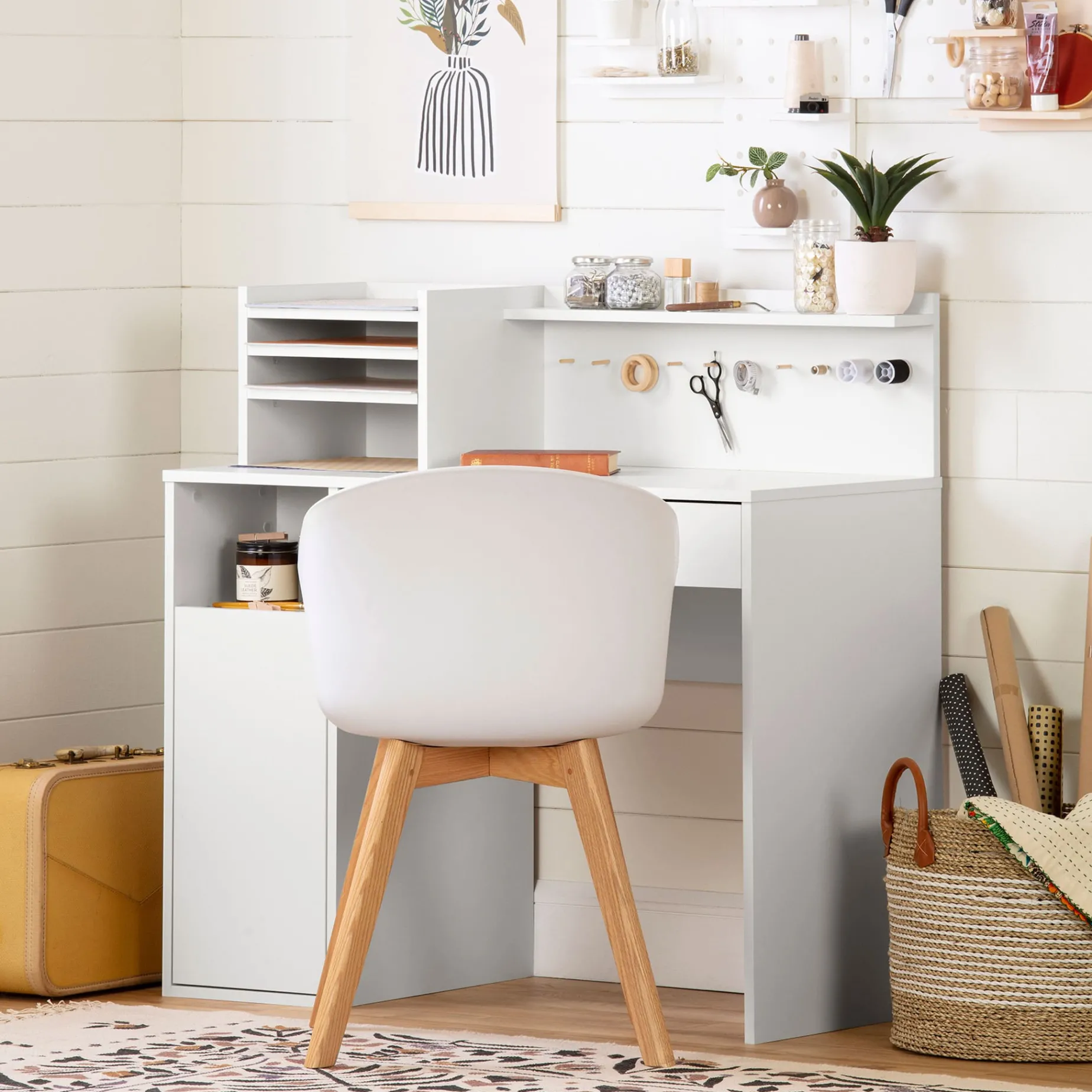 Craft Table with Hutch – Crea Pure White