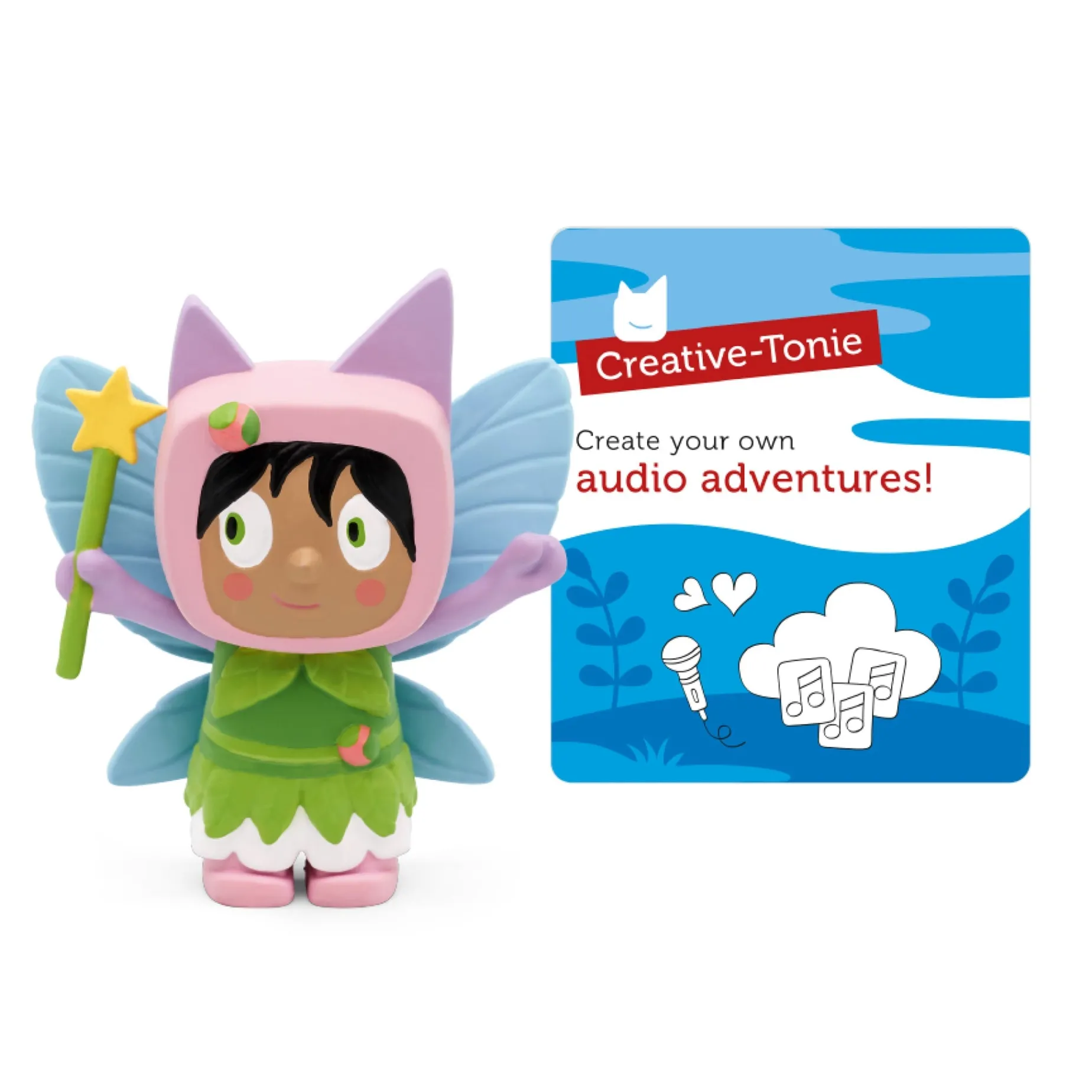This cute, little fairy will work her magic on your Toniebox. Whether an enchanting bedtime story or your own magical adventure, Creative‑Tonies can store up to 90 minutes of custom content. Just upload audio using your computer, smartphone or tablet. This Tonie teaches: imagination and creativity, sharing stories and songs, strengthening family bonds.