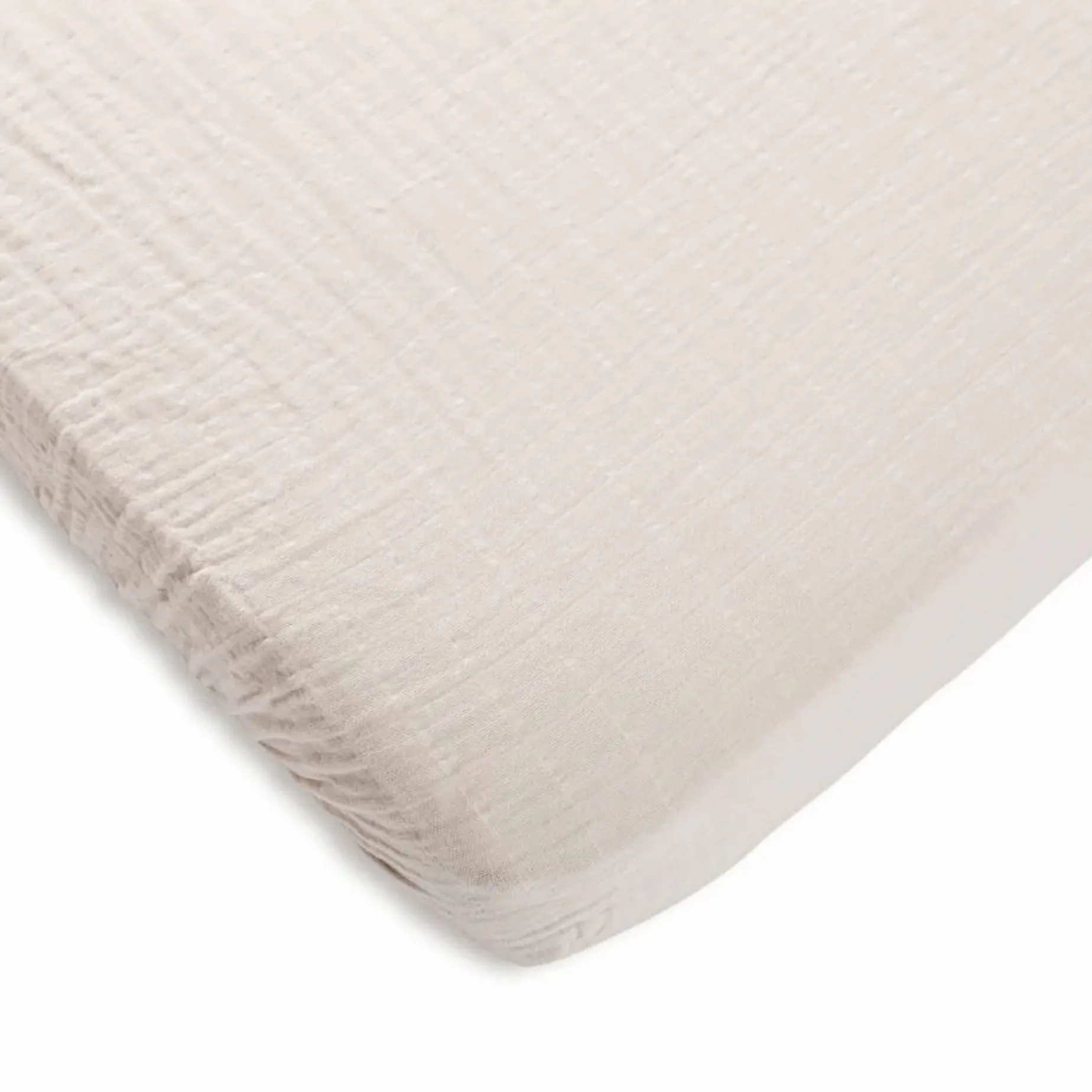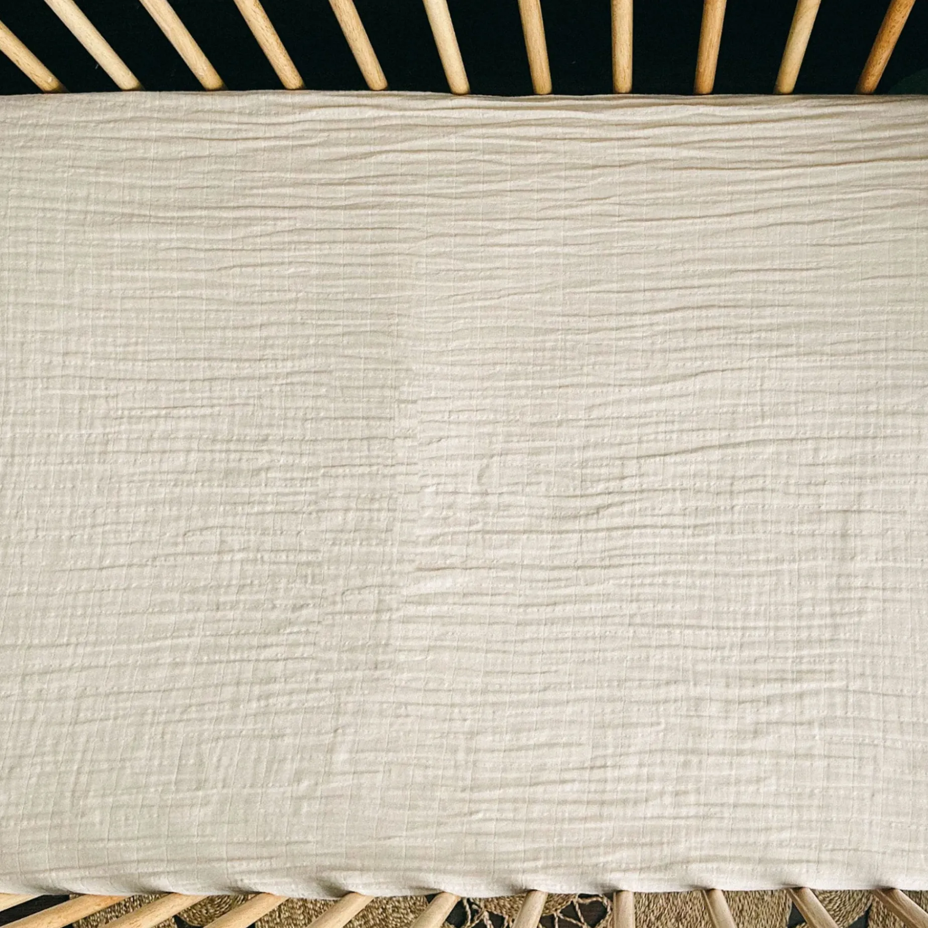 Our fitted crib sheet is made from 100% certified organic cotton muslin, meeting the strict standards of the Global Organic Textile Standard (GOTS) and the Global Recycled Standard (GRS).