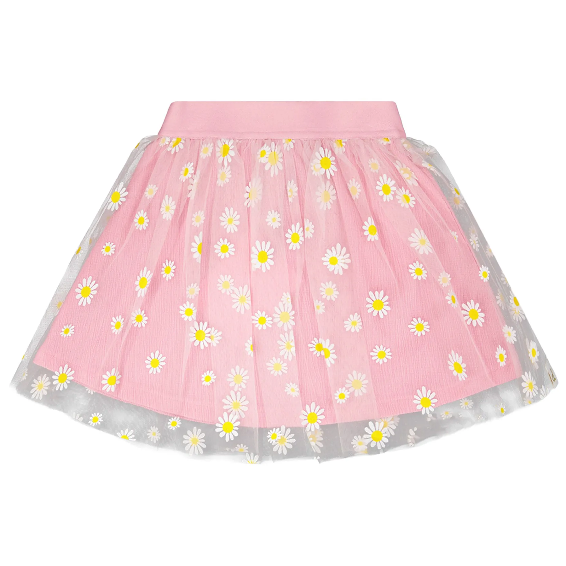 Light and twirly, our mesh and crinkle jersey skirt in pink adds a touch of magic to summer days. This flared skirt is designed with a soft elastic waistband, airy mesh overlay with charming daisy print, and a comfortable crinkle jersey lining for playful movement. Perfect for pairing with a t-shirt or blouse from the “Explosion Of Daisies” collection for a blooming look.