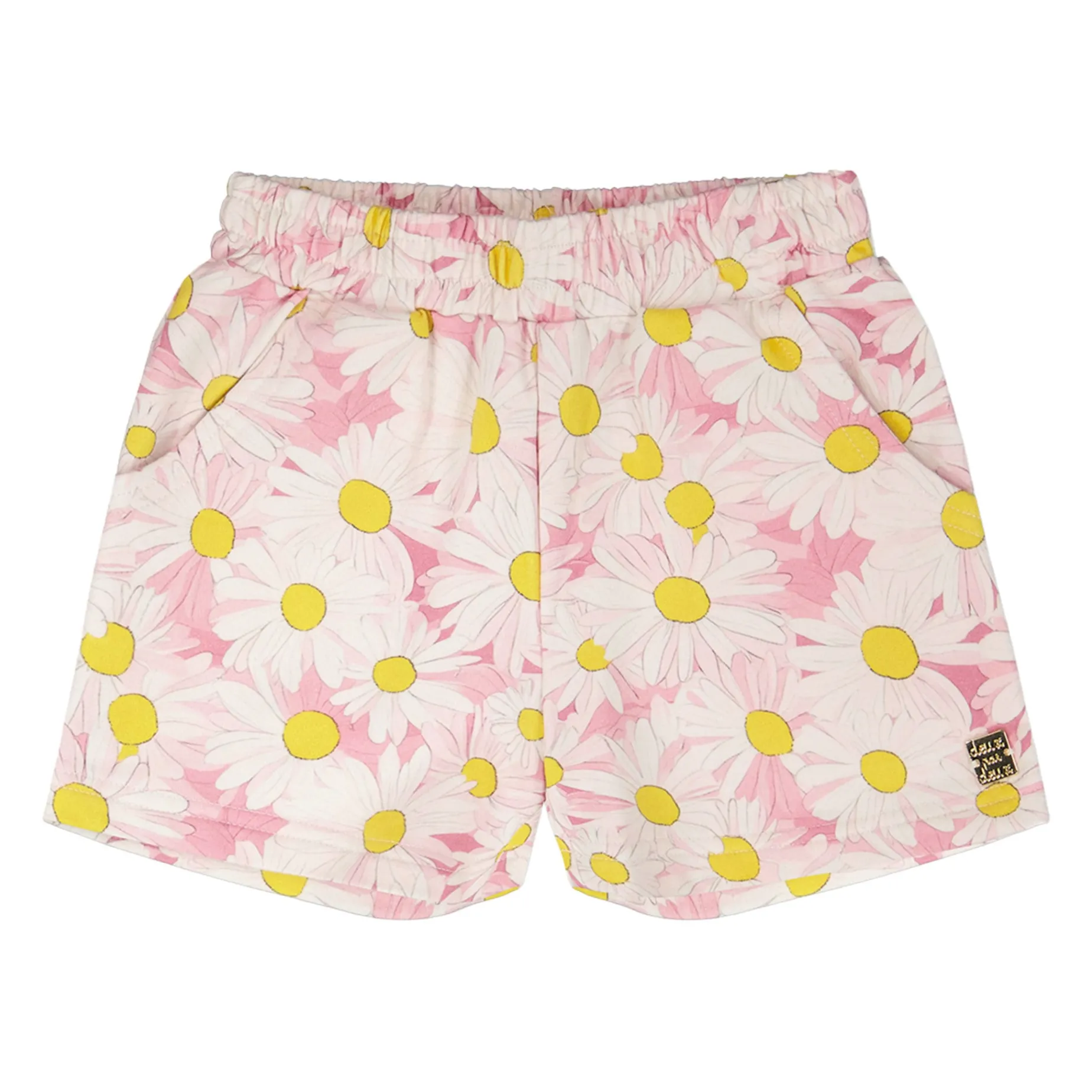 Playful and comfy, our French terry shorts pink with printed daisies bring a fresh and cheerful vibe to summer days. These bottoms feature an elastic waistband for easy wear and practical scoop pockets, all highlighted by a lively daisy print. From the “Explosion of Daisies” collection, they are perfect for mixing and matching with any light top.