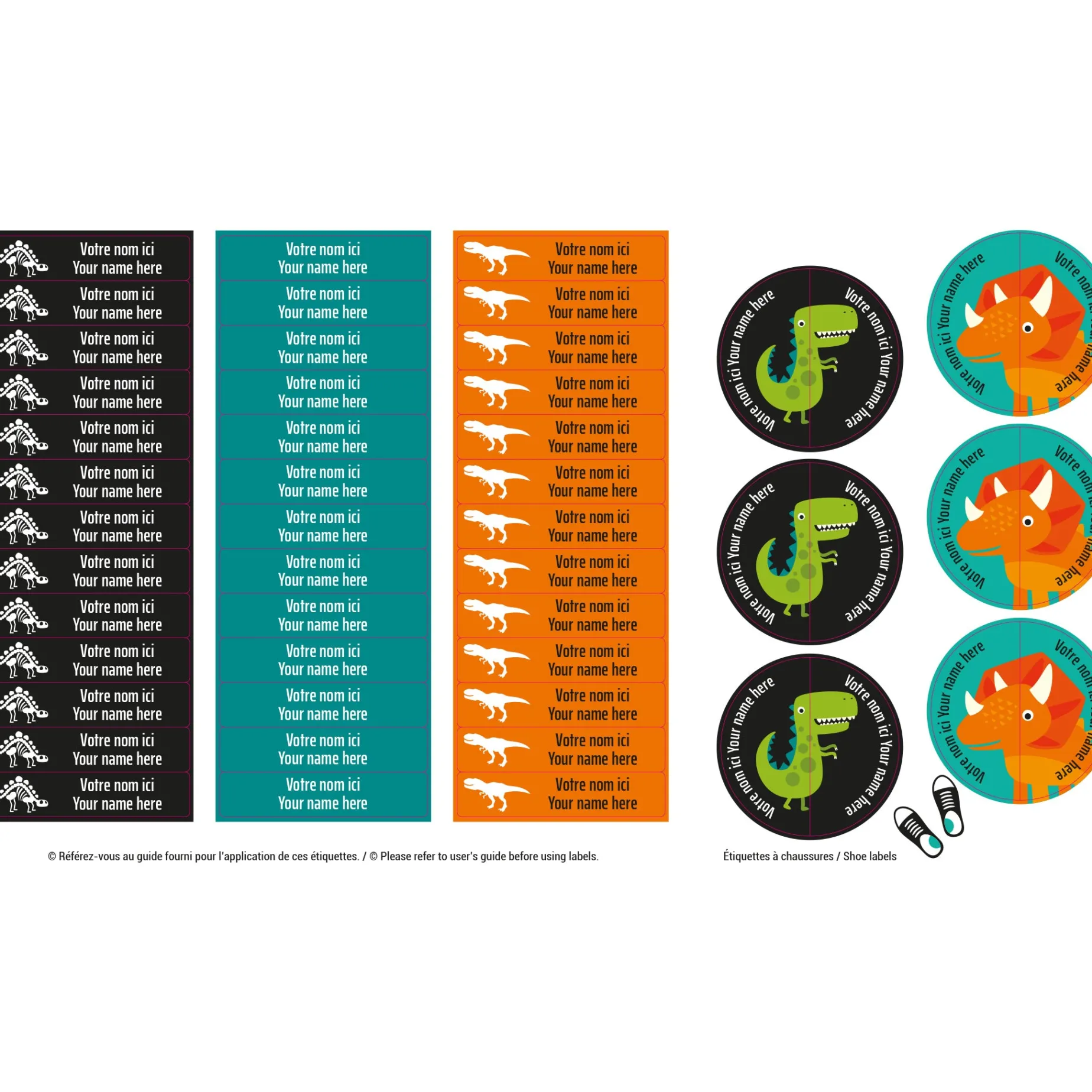 The set of personalized sticky labels ClĂ©ment becomes your best ally for the quick identification of your family’s personal items. In a few seconds, young and old will be able to recognize their school items, lunchbox items, sports equipment, shoes, clothes, etc. Waterproof and durable, the labels are not afraid of freezing, water, heat, or steam. They are resistant to the microwave, refrigerator, freezer, dishwasher, washing machine, and dryer.