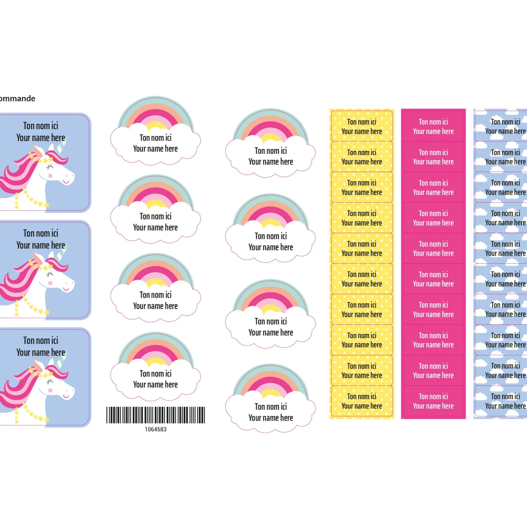 The set of personalized sticky labels ClĂ©ment becomes your best ally for the quick identification of your family’s personal items. In a few seconds, young and old will be able to recognize their school items, lunchbox items, sports equipment, shoes, clothes, etc. Waterproof and durable, the labels are not afraid of freezing, water, heat, or steam. They are resistant to the microwave, refrigerator, freezer, dishwasher, washing machine, and dryer.
