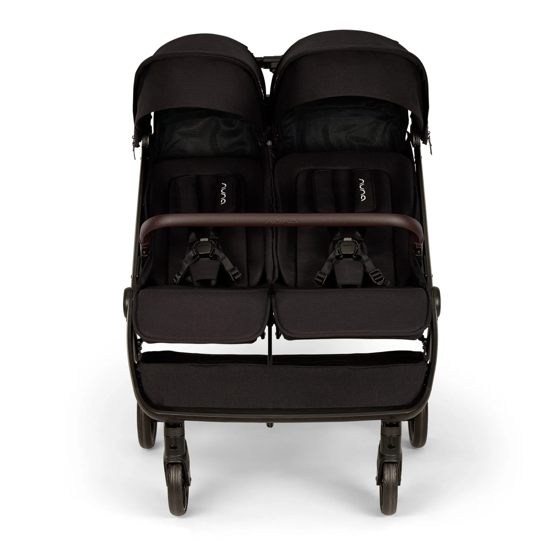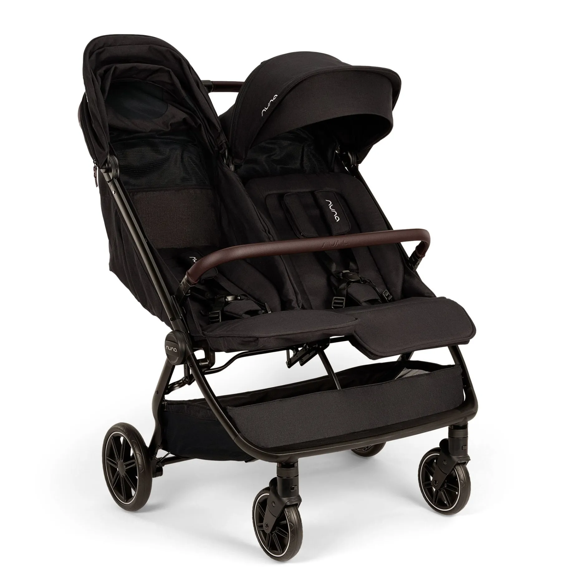 – Seats and canopies are completely independent of one another for customized strolls for two.